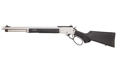 Smith & Wesson, 1854, Lever Action Rifle, 44 Magnum, 19.25" Threaded Barrel, 11/16-24 Thread Pitch, Satin Finish, Stainless Steel, Black Synthetic Stock, M-LOK Handguard, XS Ghost Ring Rear Sight, Gold Bead Front Sight, Cross Bolt Safety, 9 Rounds