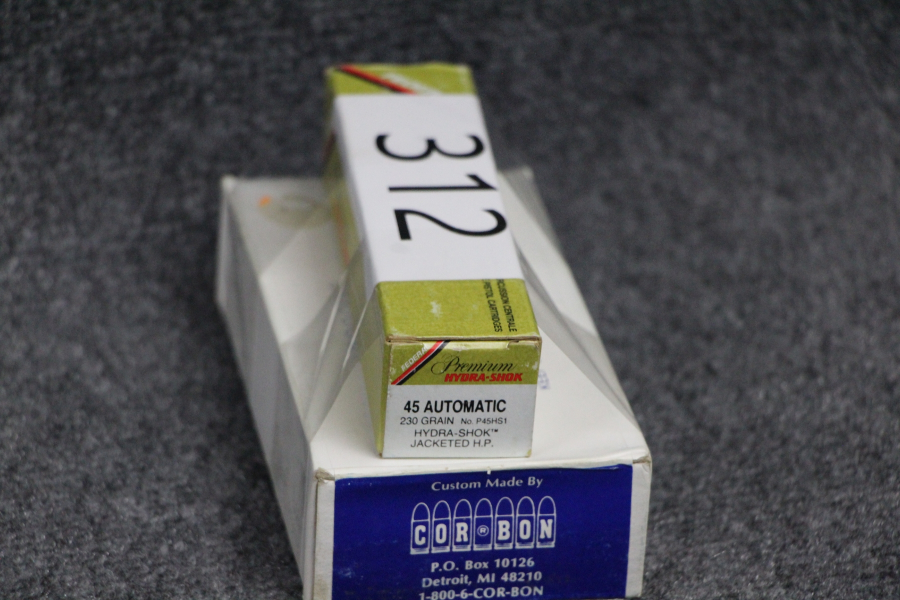 1 box Federal 230 gr. JHP. 1 box x 50 Cor Bon 185 gr. JHP