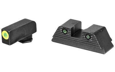 AmeriGlo, Trooper, Sight, Fits Glock 17,19,19X,26,45 Gen5, Green Tritium LumiLime Outline Front, Green Tritium Black Serrated Rear, Front/Rear