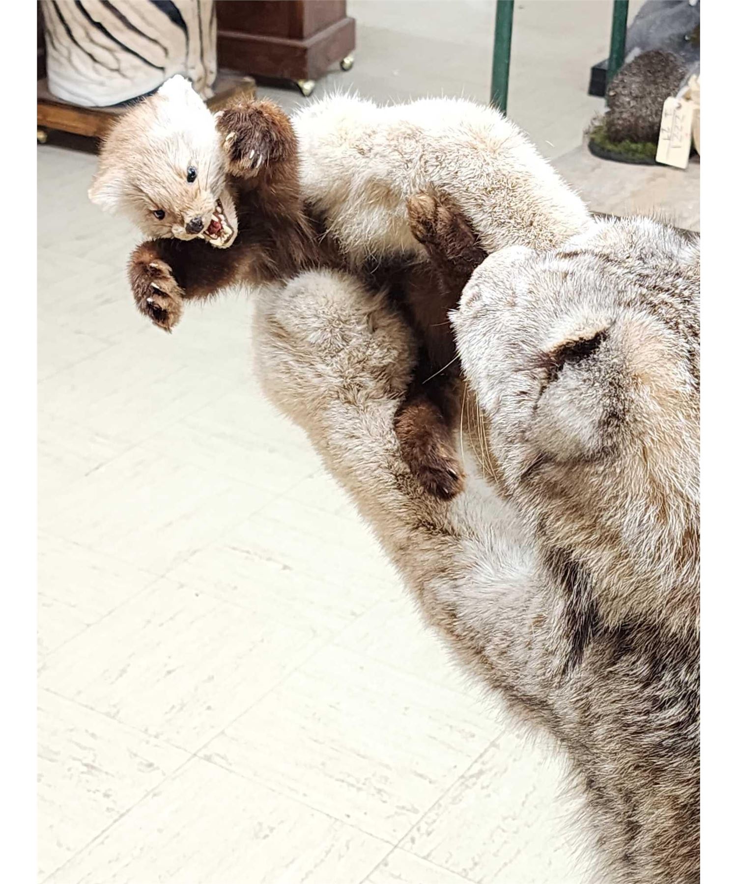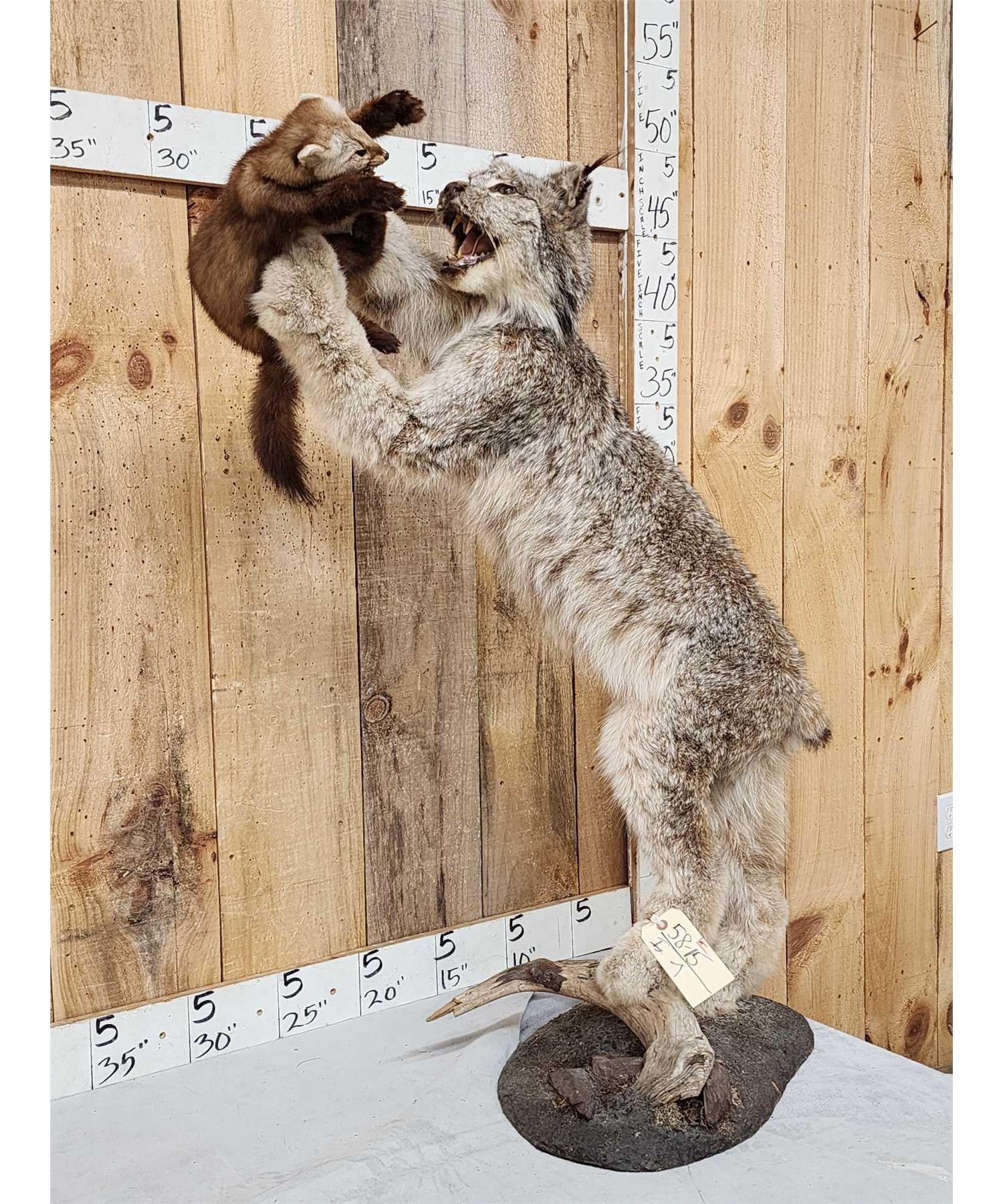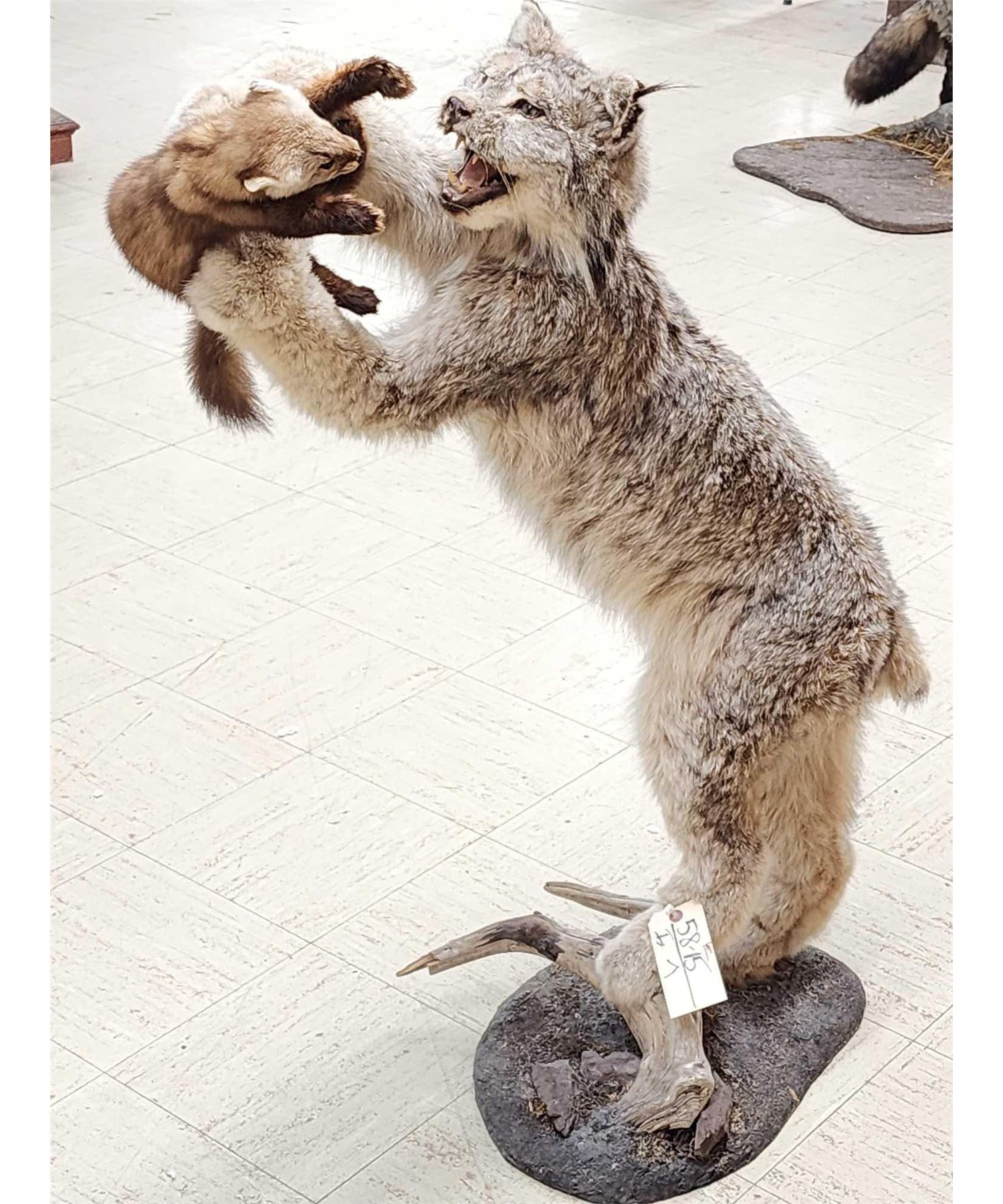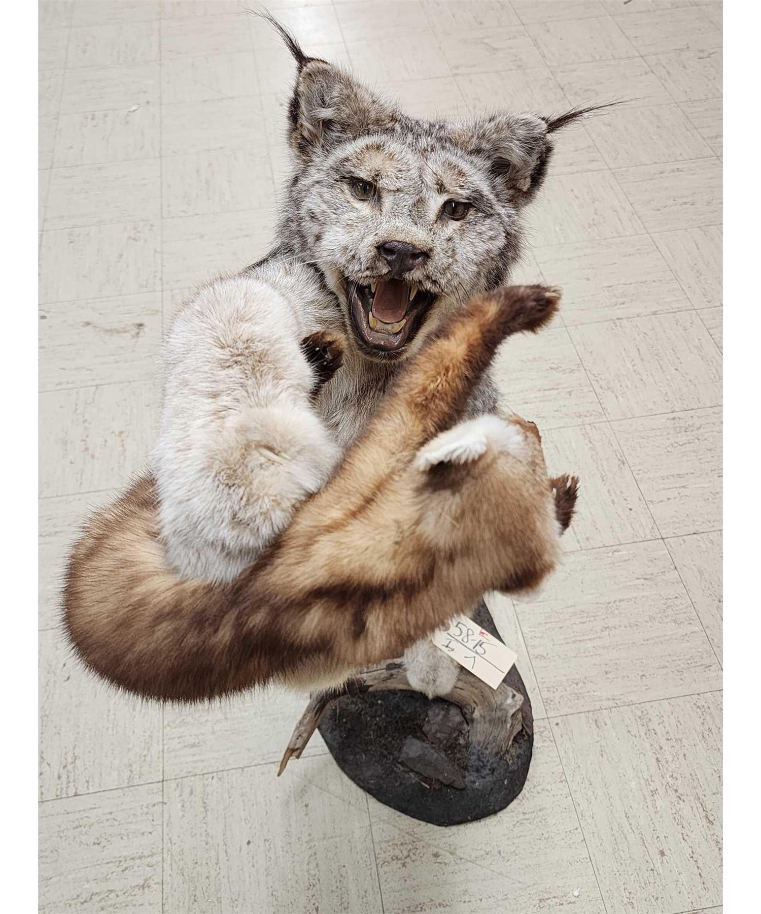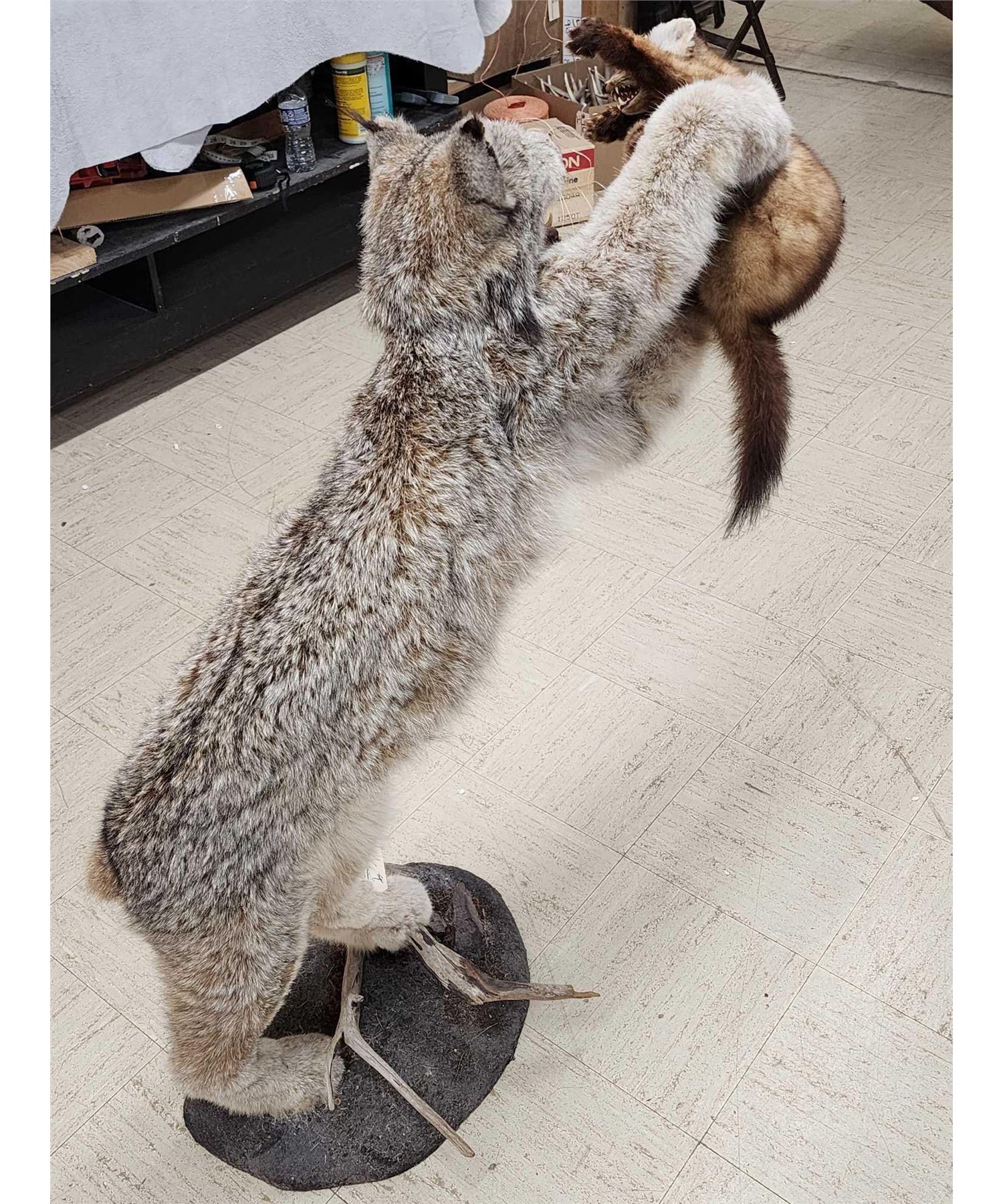 Lot 7 Alaskan Lynx Catching A Pine Marten Full Body Taxidermy Mount