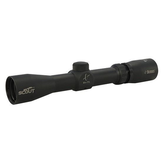 The legendary Col. Cooper's Scout Rifle design only gets better when you add a Burris Scout scope. The slim, low- to medium-magnification optic allows for placement well forward on the rifle, allowing both eyes to get on and stay on field targets, whether sitting or moving at full speed. A tough, one-piece tube contains precision ground glass, multi-coated for glare resistance and maximum clarity. A Scout Rifle is meant for action, and the Burris field-proven design is double-spring tensioned for utter reliability, resistant to the shock of harsh use. Positive steel-on-steel click adjustments provide repeatability and the whole package is completely fog and waterproof. You guessed it the legendary Scout gets the legendary Burris Forever Warranty. Mounted forward of the ejection port, the Burris 2-7x Scout Scope offers ultra-fast target acquisition with both eyes open. The advantage of a scout scope coupled with the variable power range and ballistic plex reticle makes this one of the best options for lever actions or scout carbine rifles like the Ruger Gunsite Scout Rifle. Packed with all the same great features as all other Burris scopes, the 2-7x Scout offers fully-multicoated lenses, tight mechanical tolerances, steel on steel adjustments and a lifetime factory warranty. Technical Information
