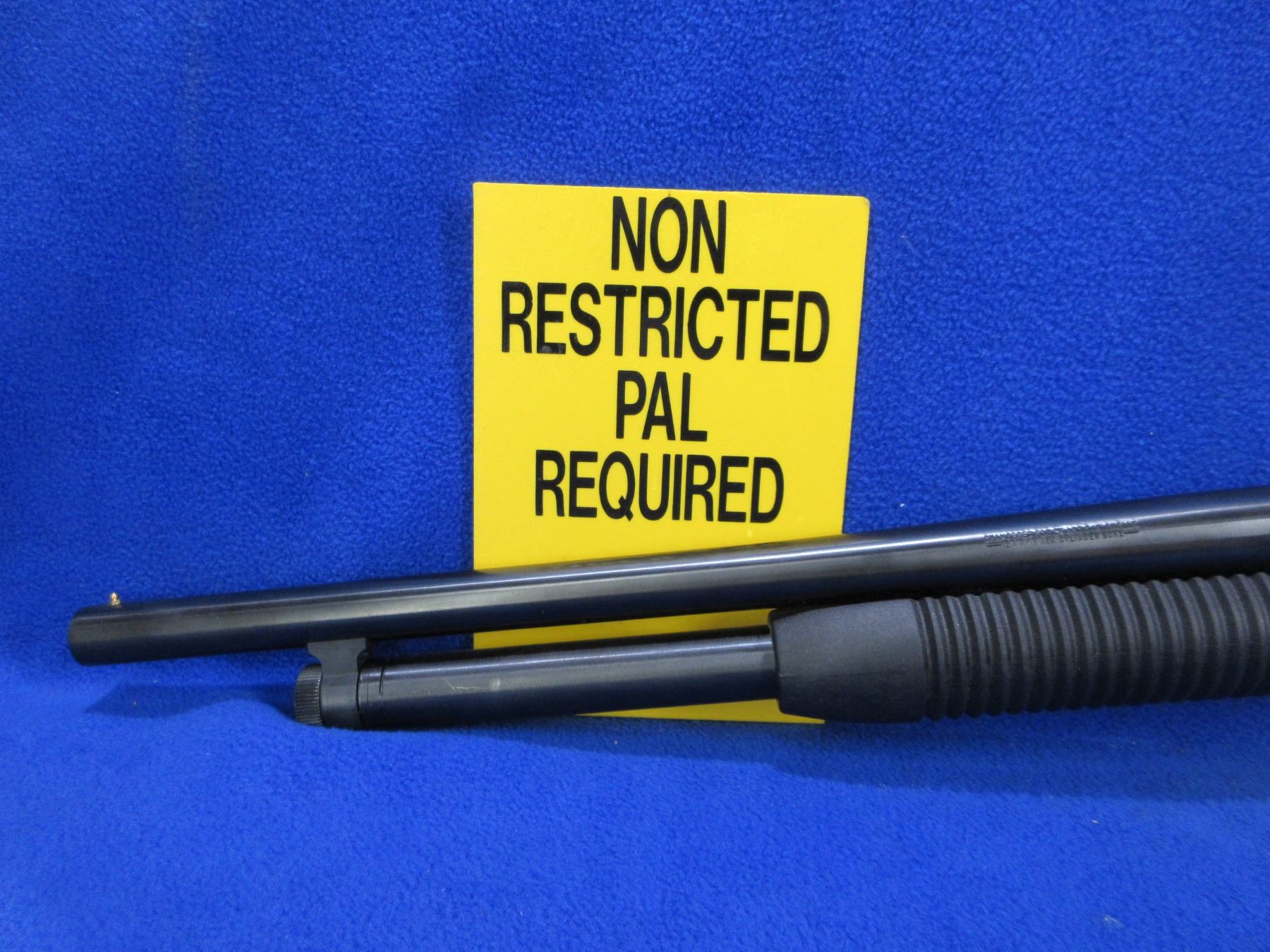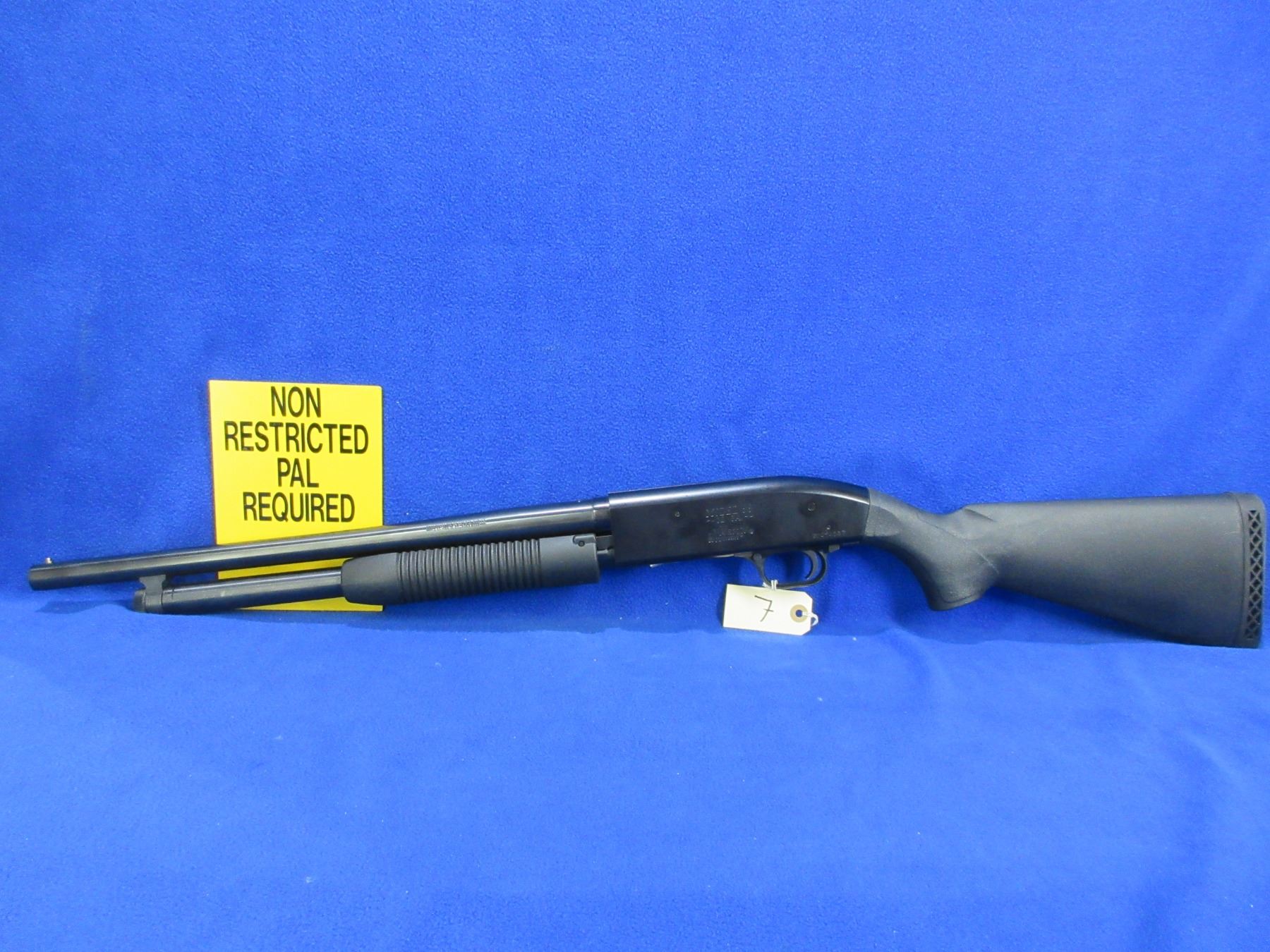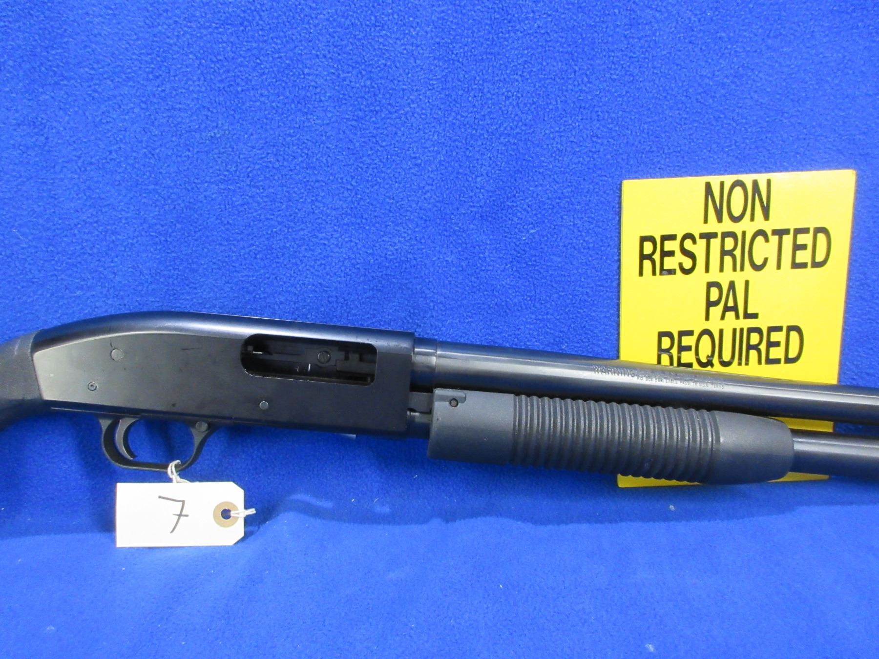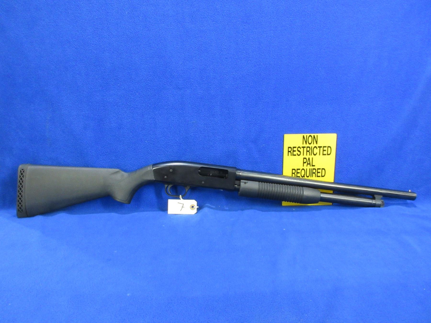 Non-Restricted - Mossberg Maverick 88 in 12 Ga. 2 3/4" & 3"- This is a pump action shotgun with tube magazine, action appears to be in good to very good working order. Barrel is 18 1/2", bore is good, black finish is good, has bead front sight, synthetic stock is good to very good, length of pull is 14", synthetic forearm is good to very good, rubber recoil pad good, comes with manual and a magazine plug. Ser # MV47404Y