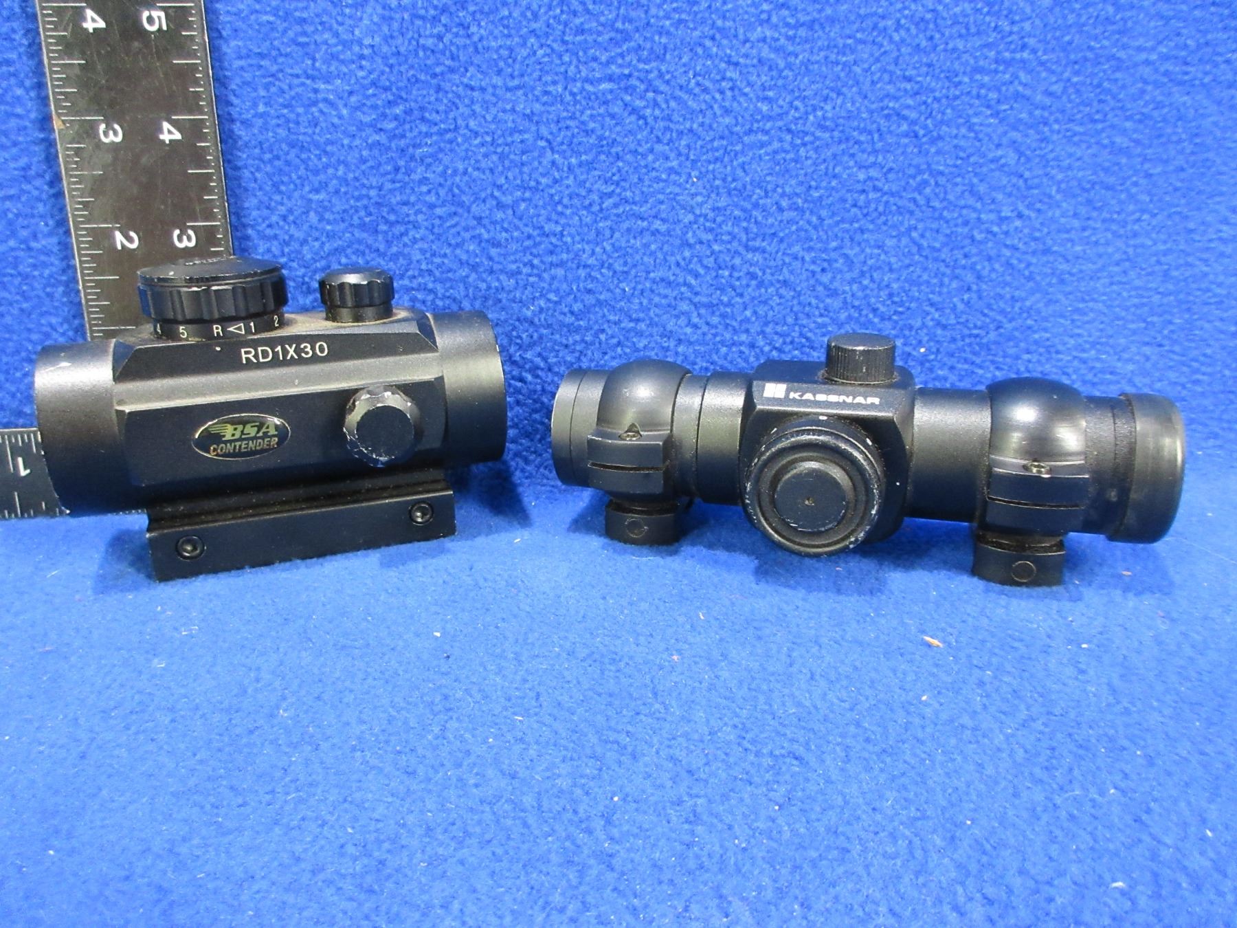 2 Red Dot Sights - Kassnar Rubydot & BSA Contendor RD1X30 - BSA Tested Working, Kassnar Needs Batteries and has 30MM Rings