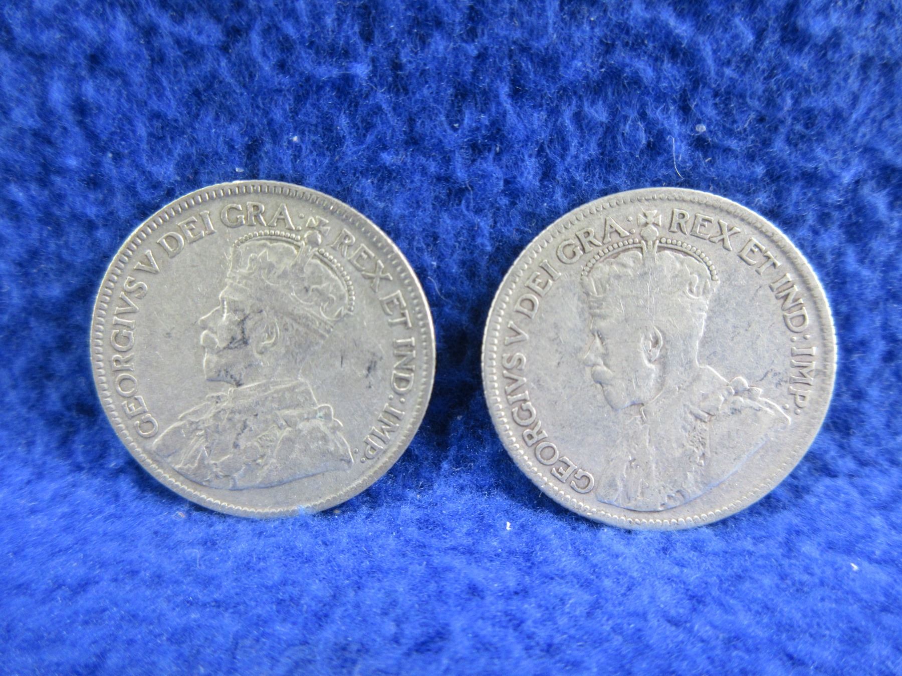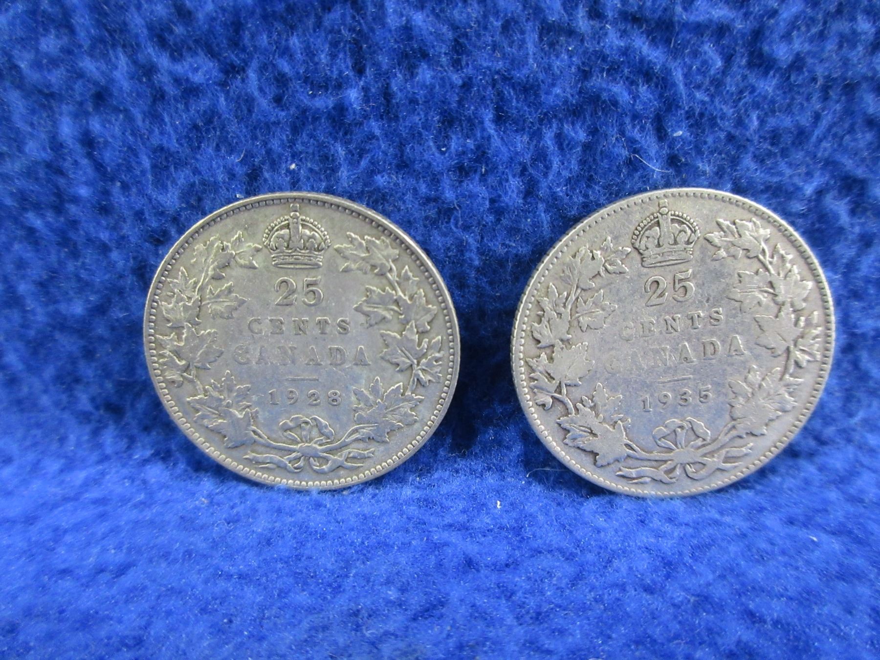 2 Canadian 25 Cent Coins - .800 Silver - 1928, 1935