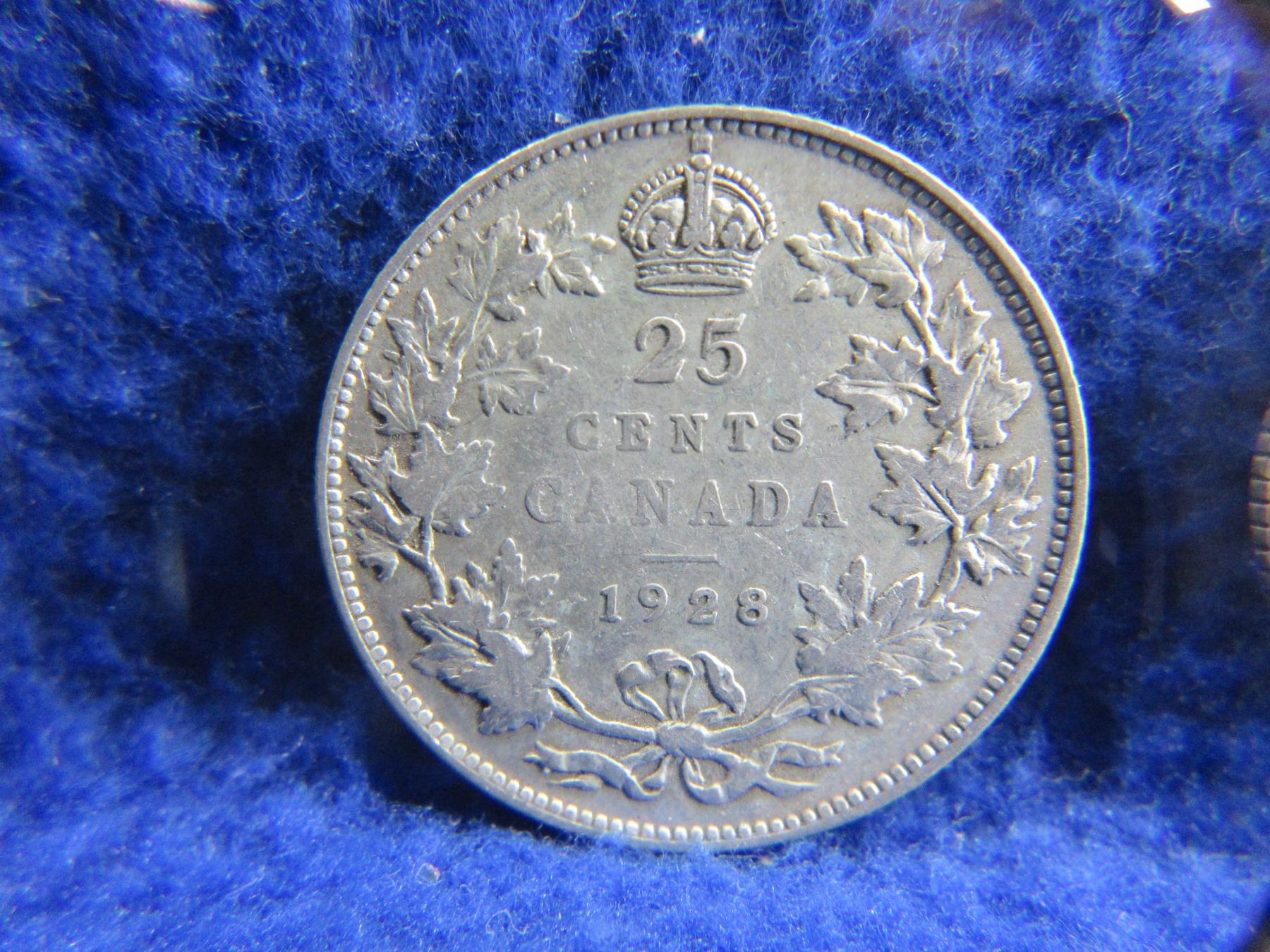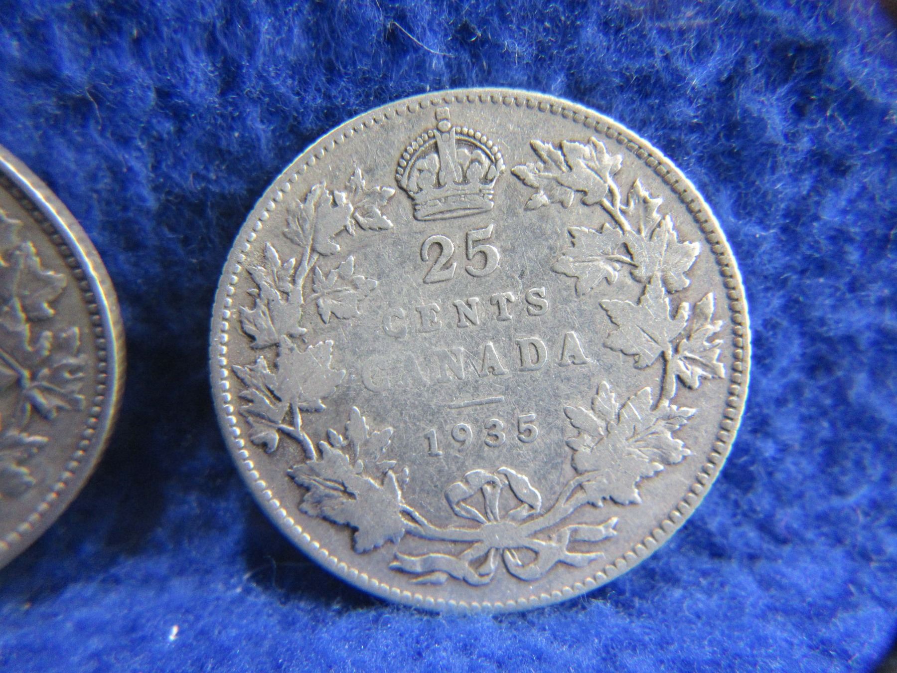 Lot 2261 2 Canadian 25 Cent Coins - .800 Silver - 1928, 1935
