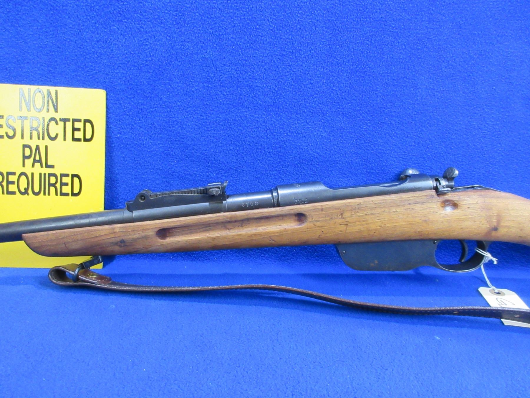 Non-Restricted - Steyr M95/24 in Should be 8X57 Mauser as barrel is not marked and consignor did not know - This is a straight pull bolt action rifle with internal stripper clip magazine, action appears to be in good working order. Barrel is 23", rifling is good to very good, bluing is good, has both sights, stock has a crack top and bottom in the wrist area, length of pull is 13 1/4", metal butt plate good, comes with swivels and a leather sling. Ser # 6702