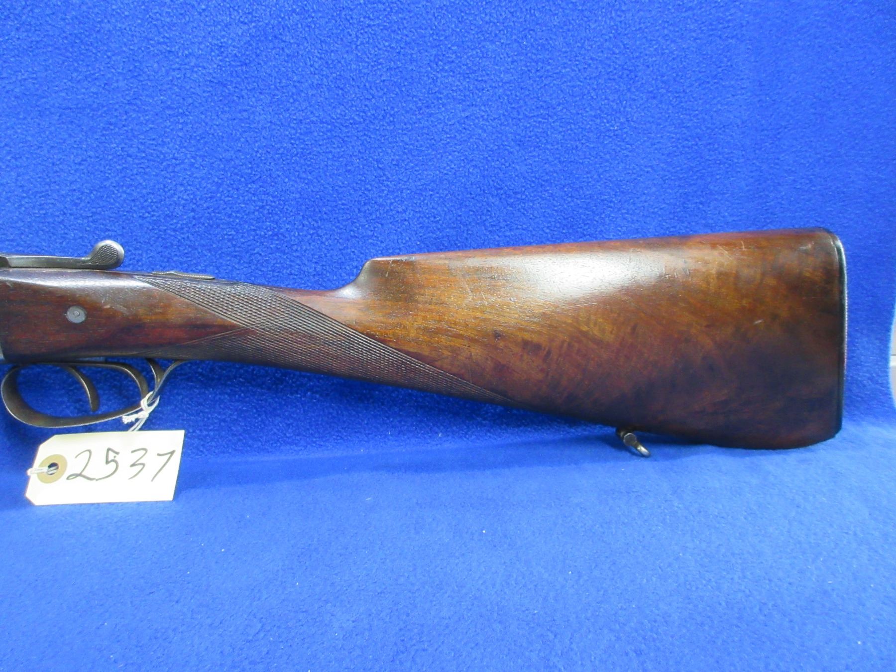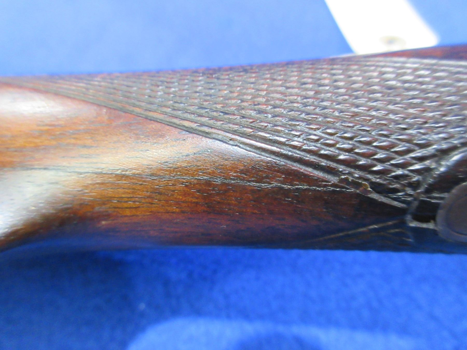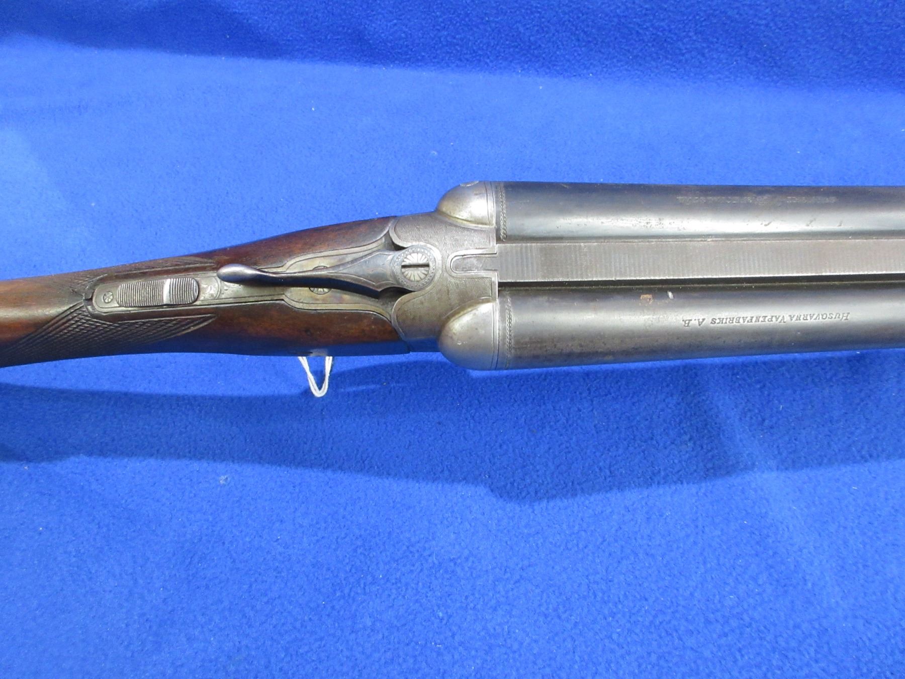 Non-Restricted - Husqvarna Model 310 in 12 Ga. 2 3/4" - This is a tip up SXS shotgun, action has a small amount of play to the barrel but appears to be in good working order. Barrels are 27 1/2", bores are good to very good, bluing is good but turning grey, has bead front sight, stock has a hairline crack in the wrist area on top and a large chip in the toe, forearm is good to very good with usage marks, length of pull is 13 3/4", butt plate is broken, comes with swivels. Ser # 203087