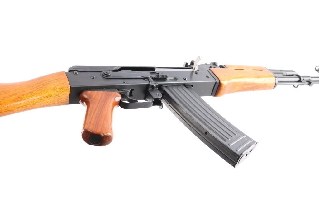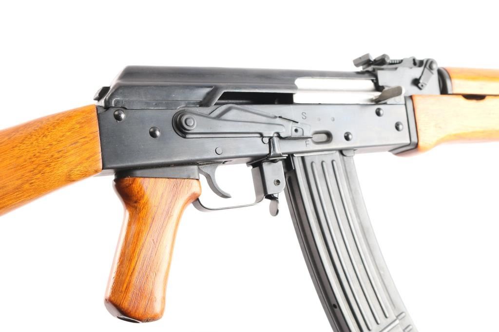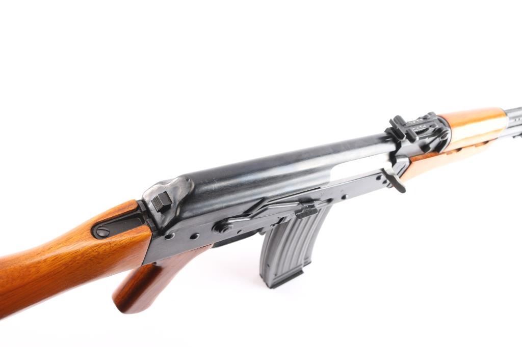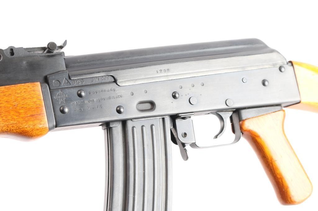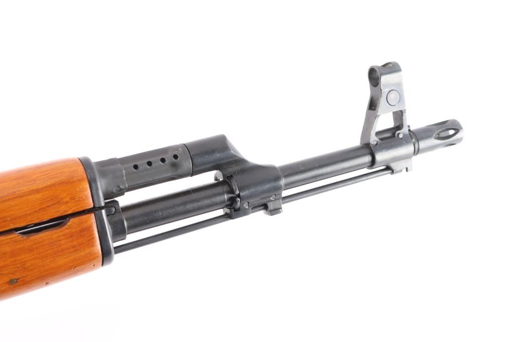 ‘Pre-ban’ Desirable semi-automatic AK pattern rifle chambered in 5.56mm. Manufactured in China at state factory 66 and imported by CSI of Dallas, TX with import marks on the left side of the receiver. Features a blued finish, 16.25" threaded barrel with attached flash hider, hooded adjustable post front sight, tangent rear sight graduated to 800 meters, bayonet lug, cleaning rod, smooth curved trigger, manual safety/dust cover, 30 round magazine, stamped steel receiver and four-piece smooth light wood stock set with cleaning kit in the buttstock. Includes three additional 30 round magazines. Matching serial numbers found on the receiver, top cove, bolt, bolt carrier and recoil spring guide. Rifle retains approximately 95% of its original finish showing scatted scratches & minor dings. The action is mechanically sound, the chrome lined bore is excellent and the wood stocks are very good with blemishes. ‘Pre-ban’ Desirable semi-automatic AK pattern rifle chambered in 5.56mm. Manufactured in China at state factory 66 and imported by CSI of Dallas, TX with import marks on the left side of the receiver. Features a blued finish, 16.25" threaded barrel with attached flash hider, hooded adjustable post front sight, tangent rear sight graduated to 800 meters, bayonet lug, cleaning rod, smooth curved trigger, manual safety/dust cover, 30 round magazine, stamped steel receiver and four-piece smooth light wood stock set with cleaning kit in the buttstock. Includes three additional Chinese 30 round magazines. Matching serial numbers found on the receiver, top cove, bolt, bolt carrier and recoil spring guide. Rifle retains approximately 95% of its original finish showing scatted scratches & minor dings. The action is mechanically sound, the chrome lined bore is excellent and the wood stocks are very good with blemishes.