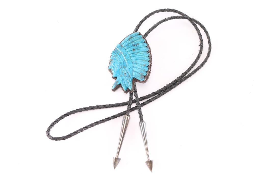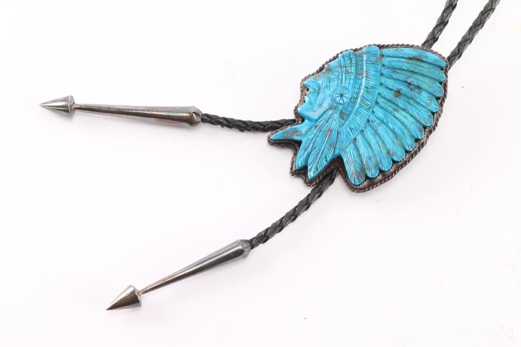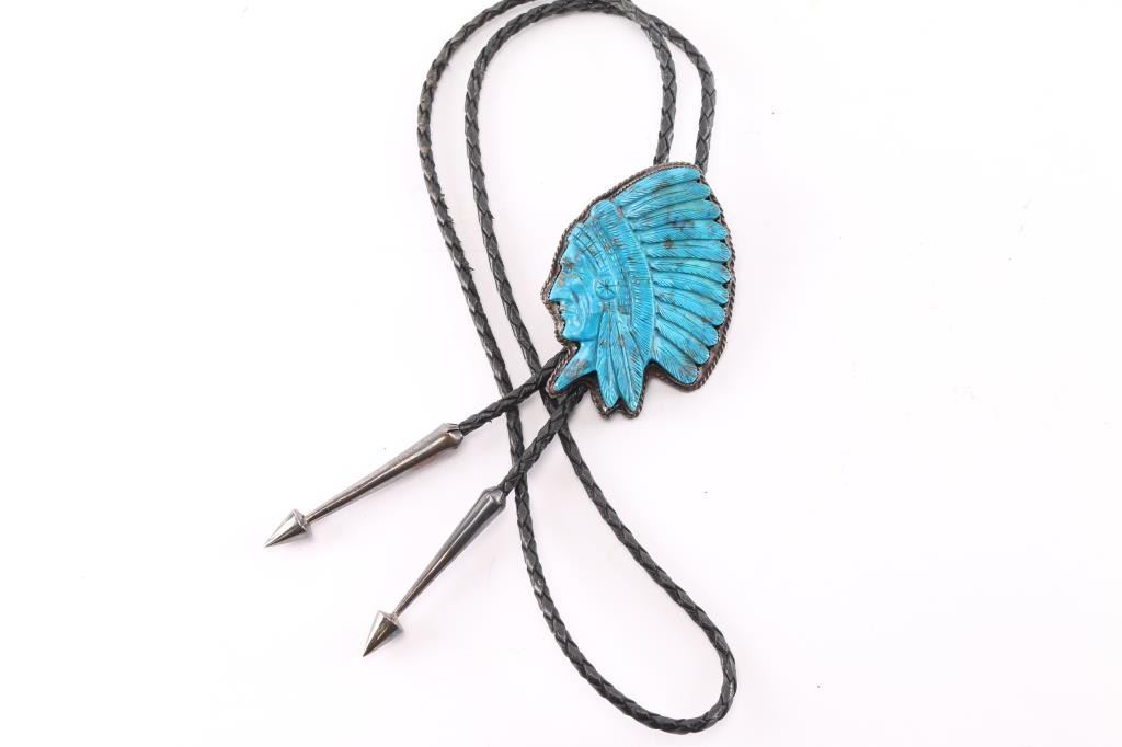 Lot 84 Carved Turquoise Chief Bolo Tie.