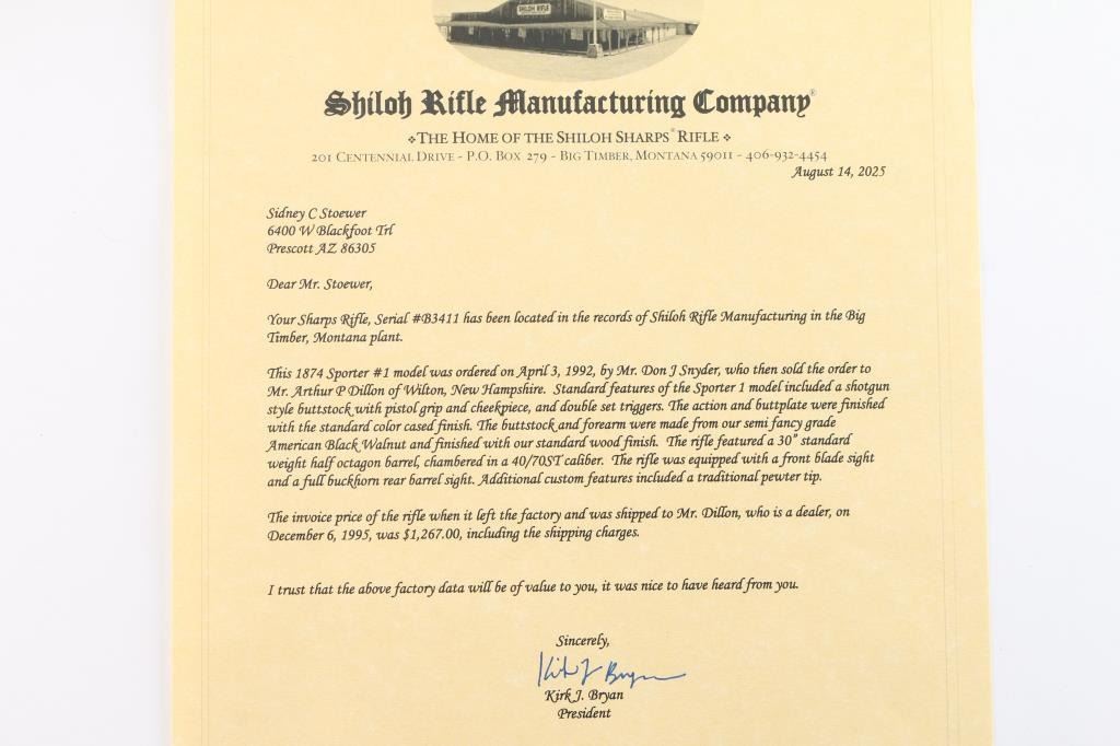 Lot 99 Shiloh Rifle Mfg Co 1874 'Sharps' .40-70 #B3411