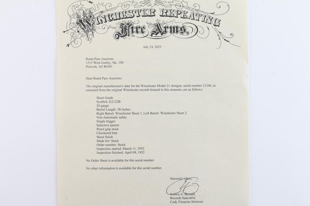 Lot 188 Winchester Model 21 'Skeet' 20 Ga #21246