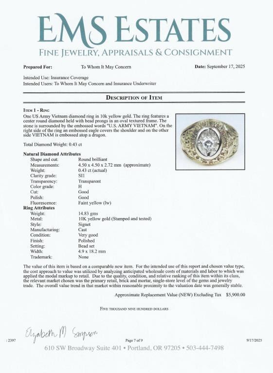 Lot 227a Rare Vintage Gents U.S. Army Vietnam Veteran