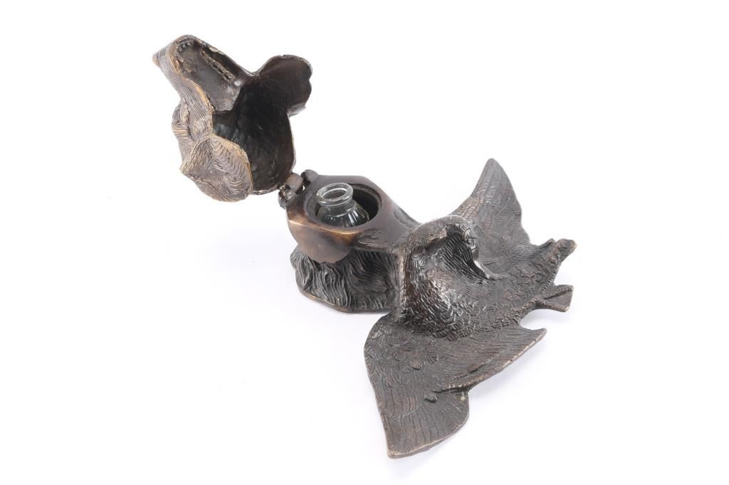 Lot 230 Bronze Bird Dog Ink Well.