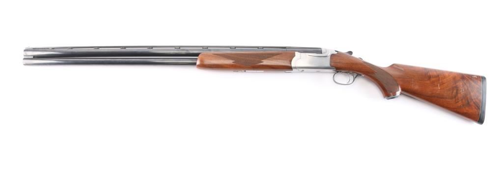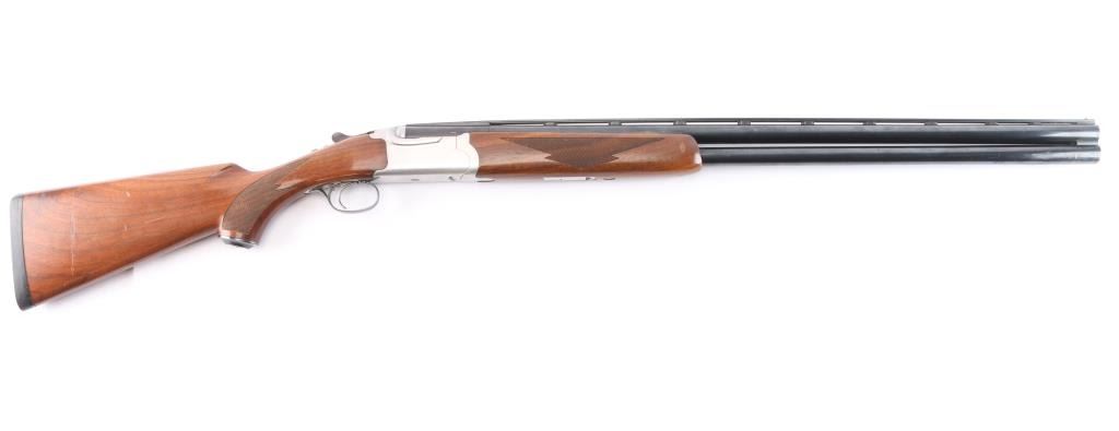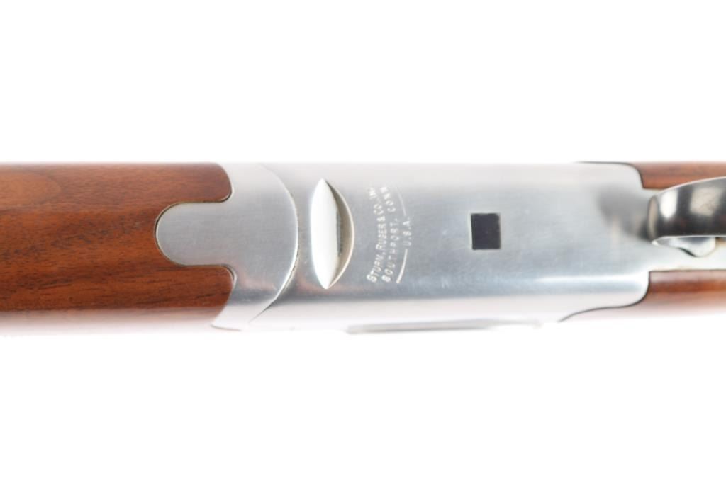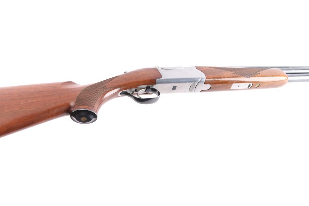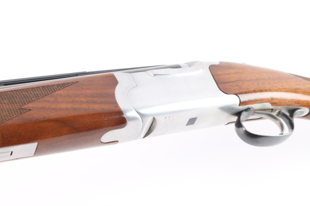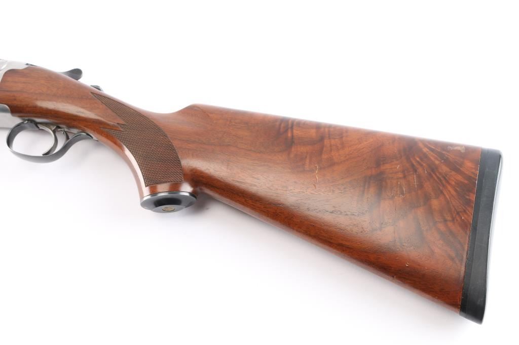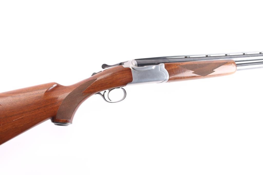 Over-Under shotgun features blued 30" vent rib barrels, stainless steel receiver, checkered wood forend, curved grip stock with checkered wrist panels, solid rubber factory butt pad, steel grip cap with Ruger medallion, single trigger, tang safety selects barrel, selective auto ejection, brass front & mid beads. Accepts up to 3" shells. Choke tubes installed (CYL over IC). Barrels and other blued parts retain about 92% finish with scratches on the lower top barrel, some rubs on the lower barrel. Bores are excellent/bright. Action is near excellent condition with small scratches. Wood is overall very good sound with scratches on the buttstock. Approx stock measurements: 14 1/4" Length of Pull, 1-3/4" Drop at Comb, 2-5/8" Drop at Heel. Manufactured 1994.
