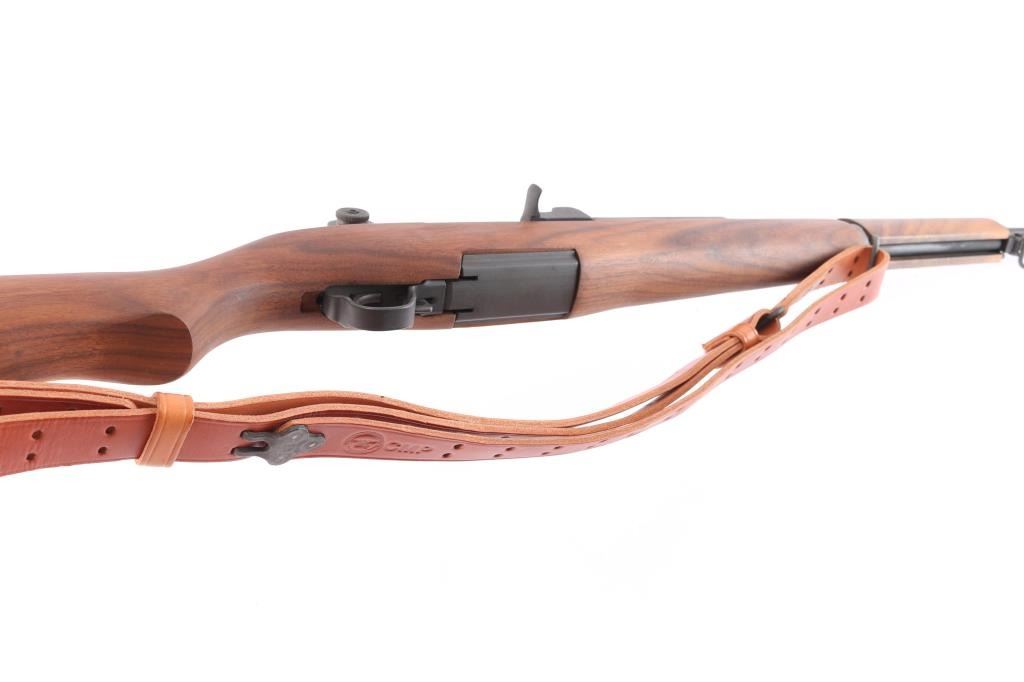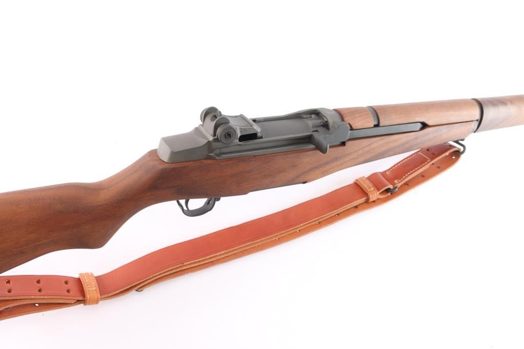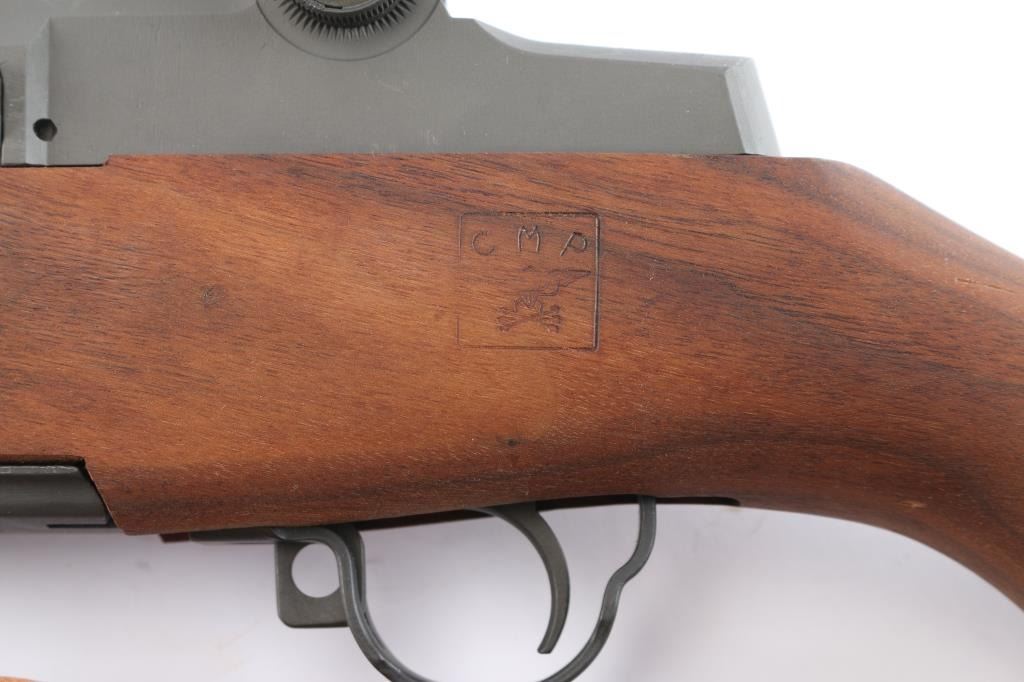 CMP rebuilt post-war era U.S. Military clip-fed semi-automatic service rifle chambered in .30-06 Springfield, manufactured circa 1955-57. (Serial Number) Features a parkerized finish, 24, shrouded blade front sight, adjustable rear aperture sight marked "DRC", bayonet lug, stacking swivel, smooth trigger, milled trigger guard, manual safety, barrel marked "6535448 03/06 2E CBI". CBI is a Criterion barrel. The original barrel could have been missing or worn out. CMP installed a new Criterion barrel when they sold their "Specials" or "Expert" grade rifles, dated March, 2006. Bolt marked "D28287-12SA, S-04" trigger housing is marked "D29290-16-SA, safety is marked C46015-6SA, op rod is marked "6535382-HRA, receiver is marked "T-A" over F 6528291" and the barrel is marked "6535448 03/06 2E CBI". Smooth walnut handguards and semi-pistol grip shoulder stock with trapdoor metal buttplate. "CMP" over eagle cartouche on left wrist. Rifle retains approximately 97% parkerizing showing minor scuffs. Action is smooth, the bore is excellent, strong rifling and the wood stocks are matching, excellent. CMP marked M1907 type brown leather sling attached.