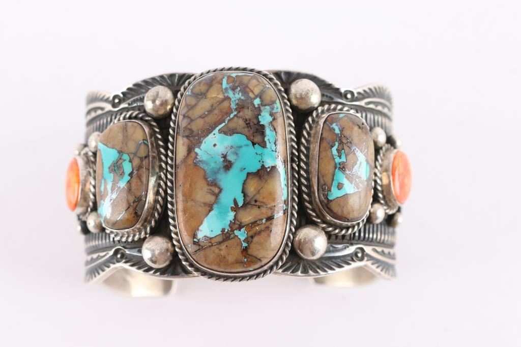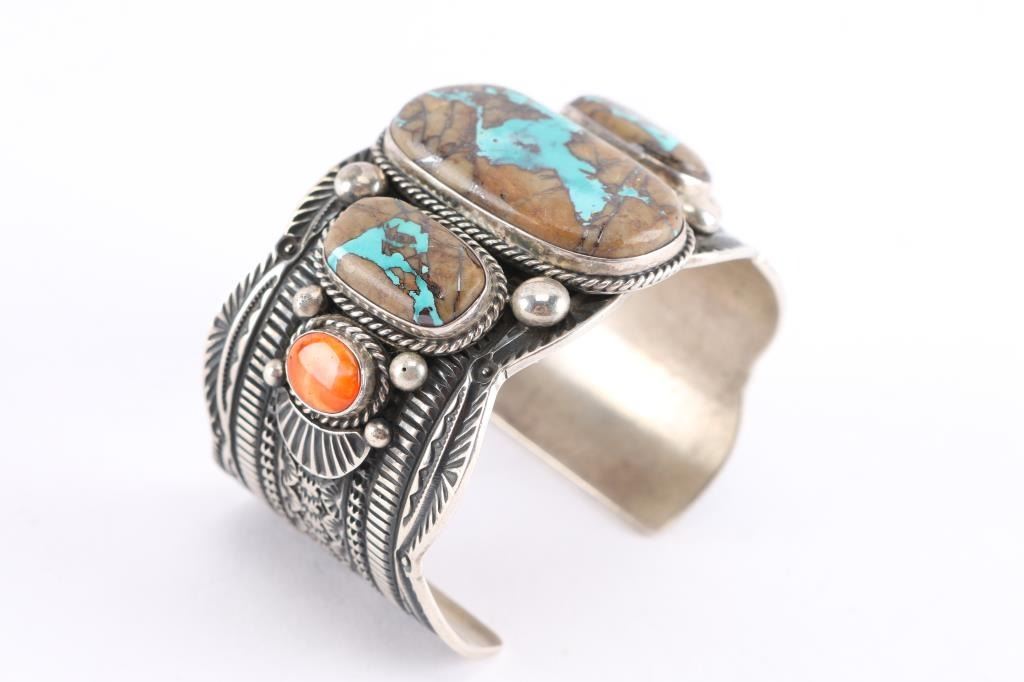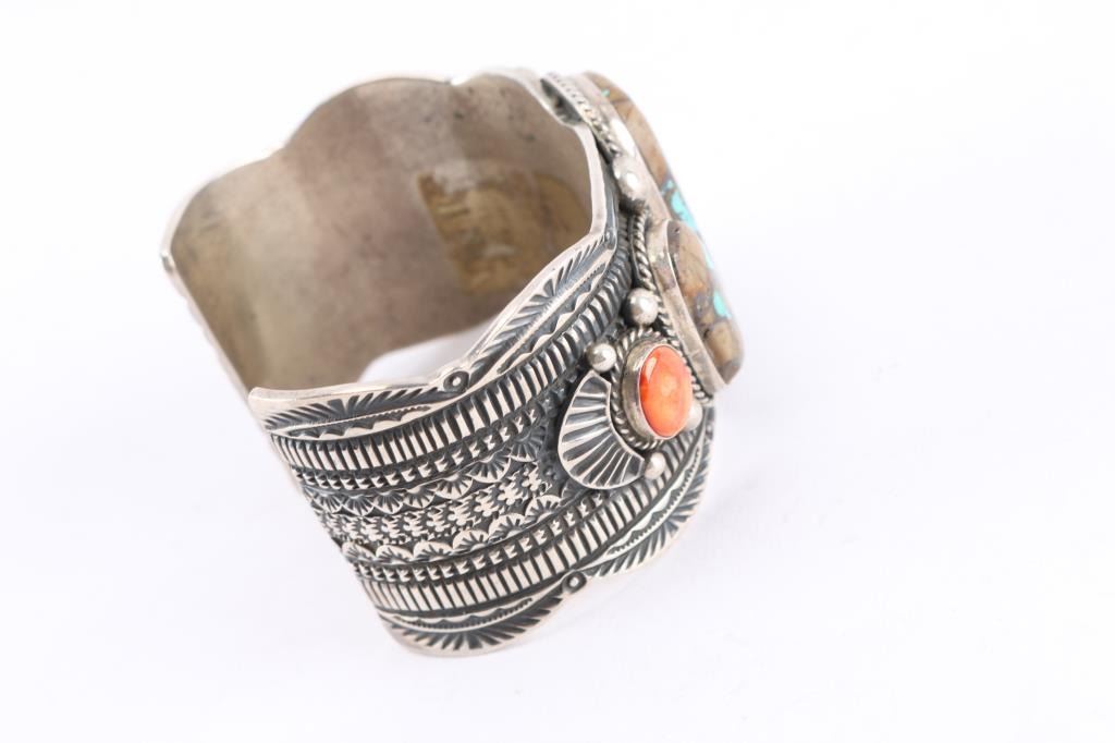 Lot 260 Gorgeous Turquoise & Coral Sterling Cuff.