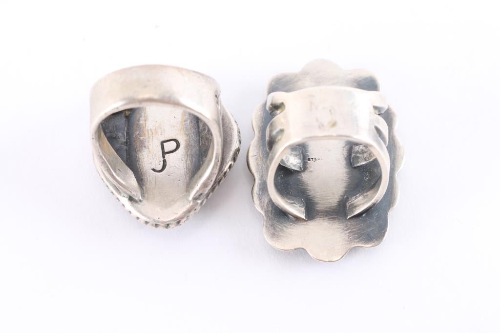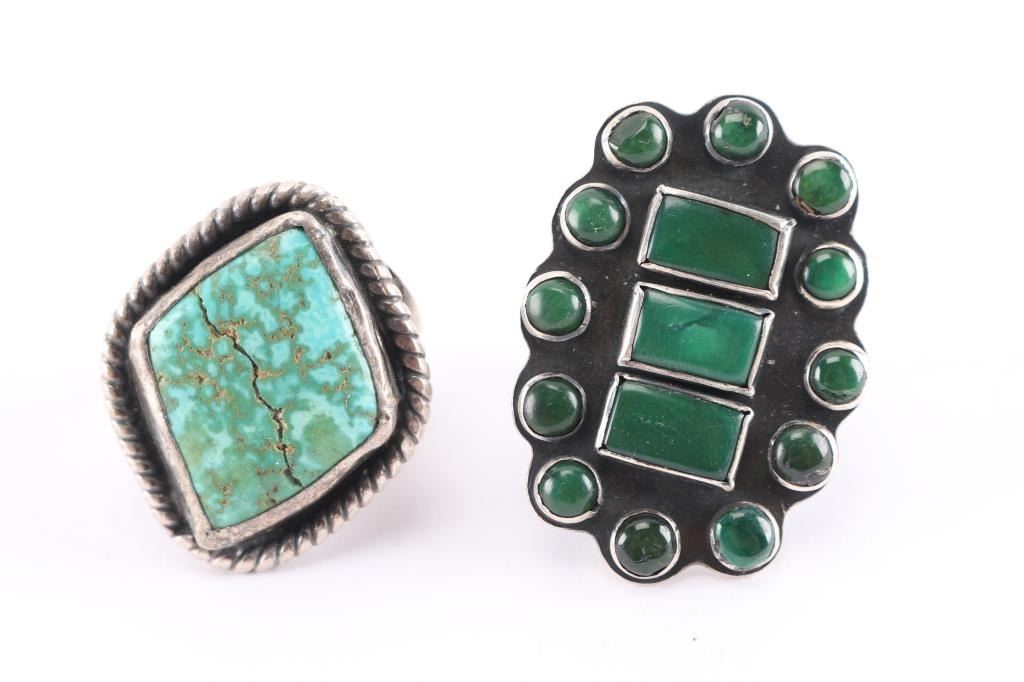 (1) Green Stone set in sterling silver, size 8; and (1) Unisex Turquoise set in sterling, size 9.