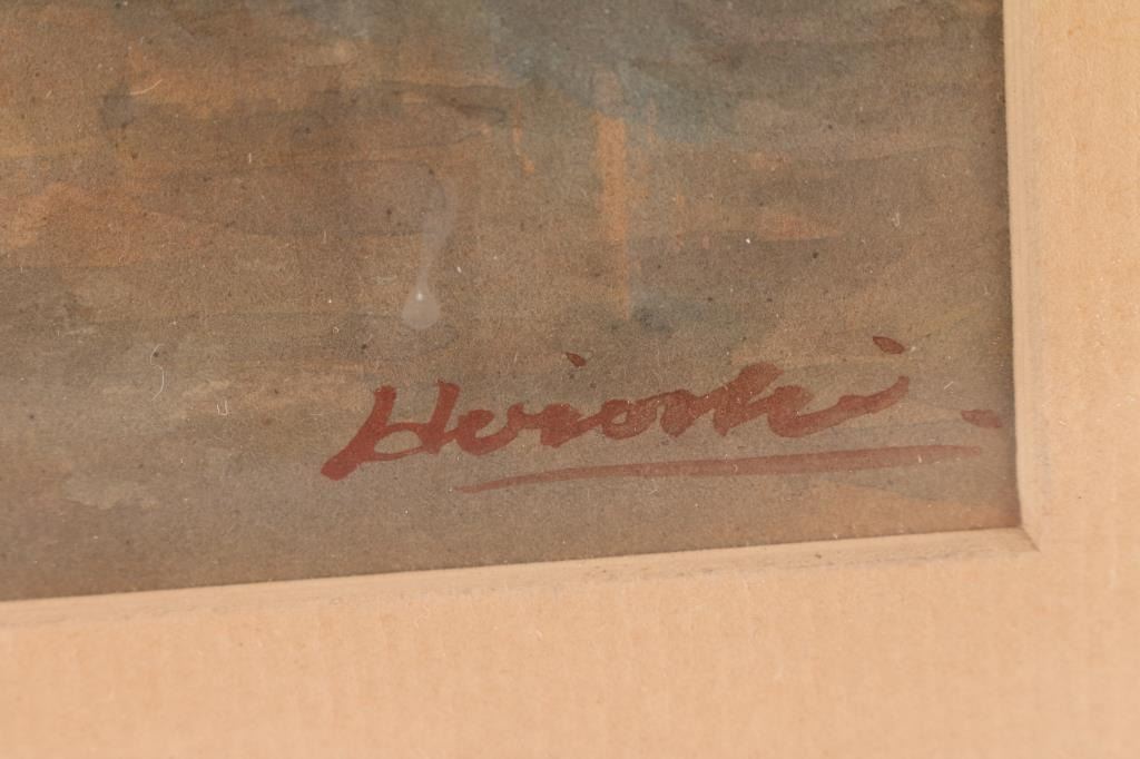 Signed in lower right corner. Matted and framed in gold frame measures 19" x 16 1/2".