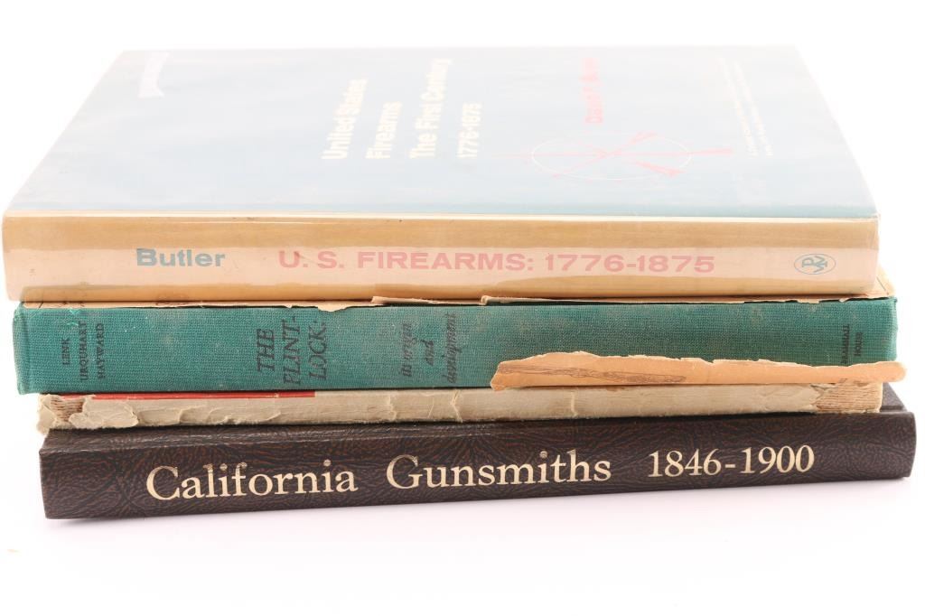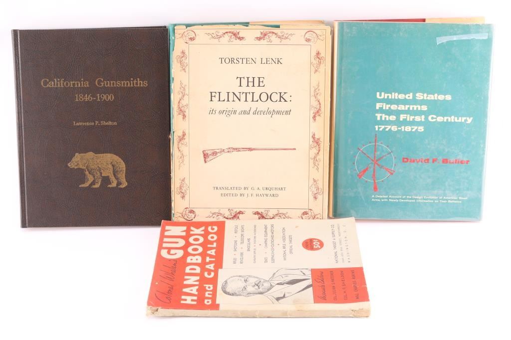 Includes: The Flintlock: its origin and development (in English) by Torsten Lenk; United States Firearms The First Century 1776-1875 by David F. Butler; Colonel Whelen's Gun Handbook and catalog 1939 Ed. by Townsend Whelen; California Gunsmiths 1846-1900 1st Ed. by Lawrence P. Shelton.