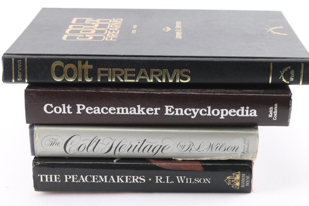 Includes: Colt Peacemaker Encyclopedia (Limited Ed.) by Keith Cochran; The Peacemakers Arms and Adventure in the American West (1st Ed.) by R.L. Wilson; Colt Firearms 1836-1960 by James E. Serven; The Colt Heritage The Official History of Colt Firearms from 1836 to the Present by R.L. Wilson.
