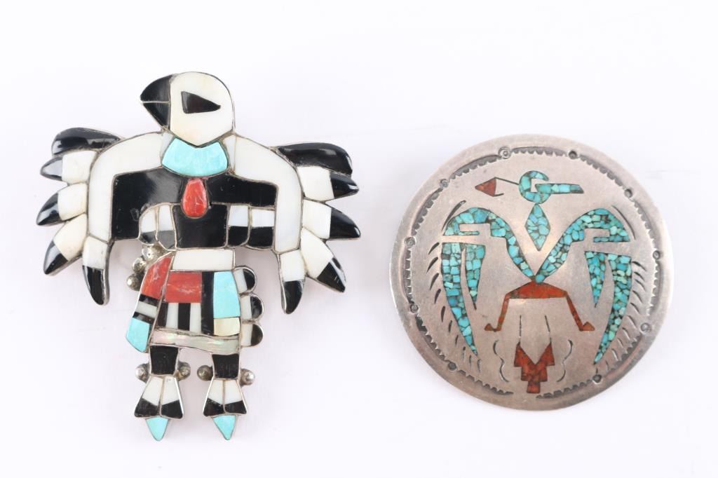 (1)Zuni Inlaid Pin-Pendant of Kachina Dancer set in sterling