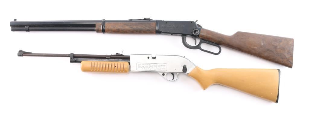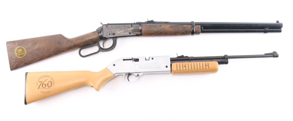 1 ) Daisy Limited Edition 1894 saddle ring carbine BB Gun. 1894 Centennial (1894-1994) Edition. .177 Cal. 2) Crosman limited edition 40th Anniversary 760 Pumpmaster air rifle. (1966-1996) No. 1211 of 1500. .177 Cal. Both are in very good condition.