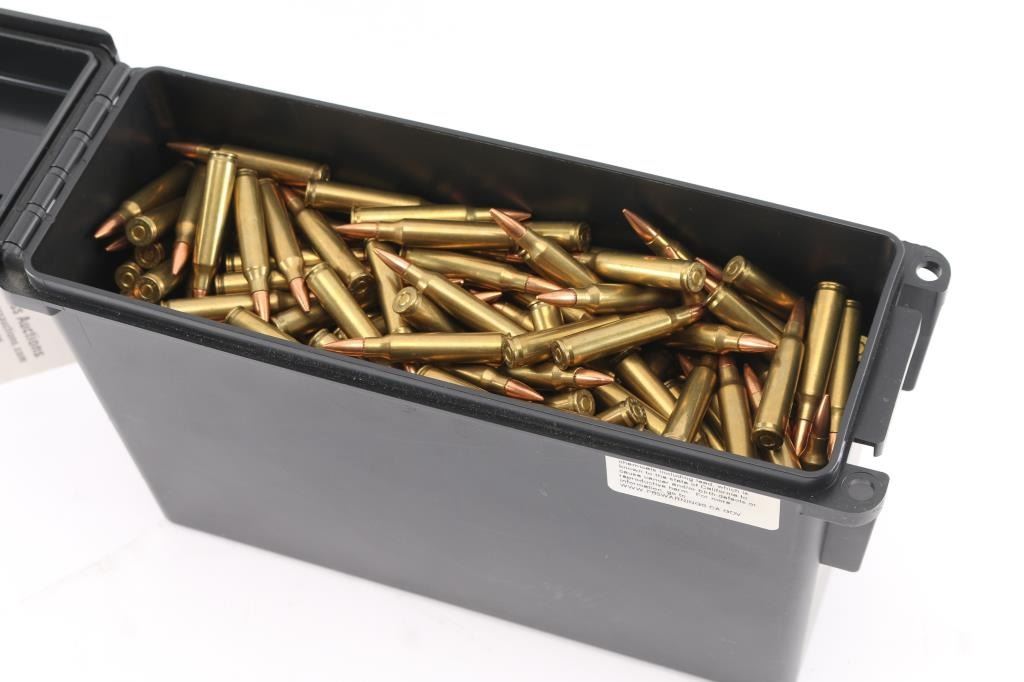 Black plastic ammo can containing 430 rounds of 223 Rem. Tracer cartridges. FMJ, various headstamps. Very Good condition. Weight-12 lbs.