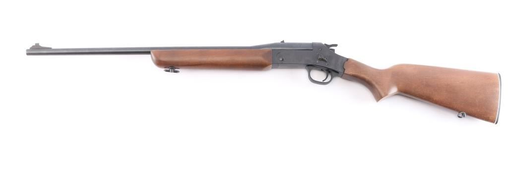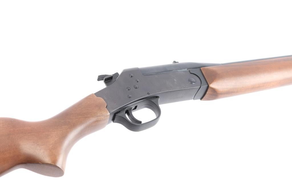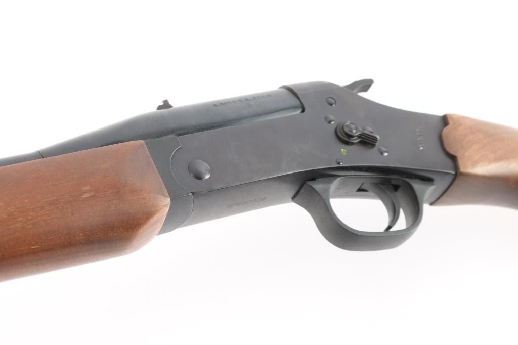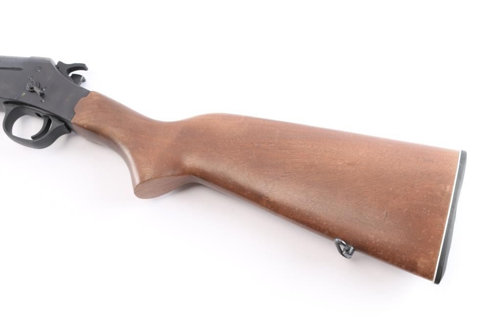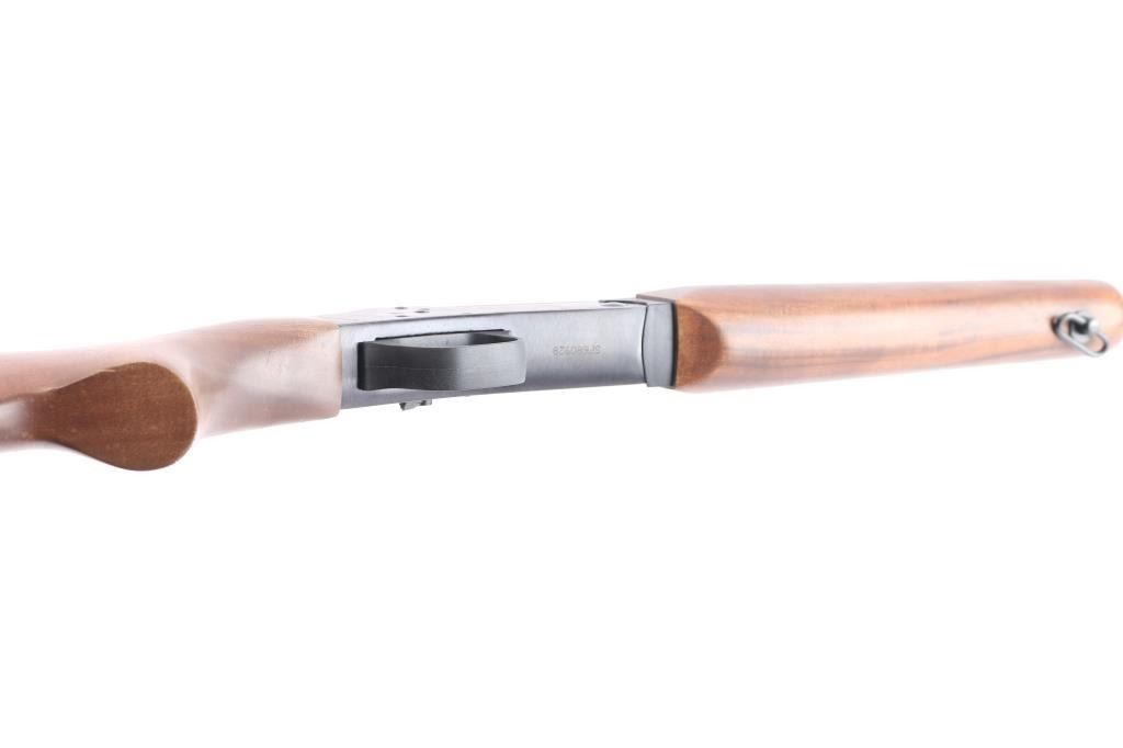 Made in Brazil this is a single shot, break action rifle chambered in .22 LR. It has a 23" barrel, with a raised blade front sight, u-notch adjustable rear sight. It has a blue/black finish on the barrel and receiver, smooth trigger, serrated hammer spur, and two piece, plain, wood stocks with a Rossi buttplate and a sling swivels, manual safety on left receiver, barrel lever to the right of hammer, drilled/tapped for optics. Metal finish looks good, very little signs of use or handling. Stocks are excellent, bore is excellent/bright, barrel locks-up tight.