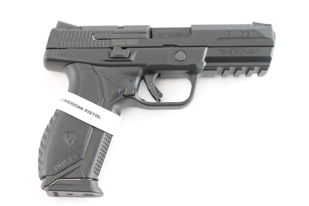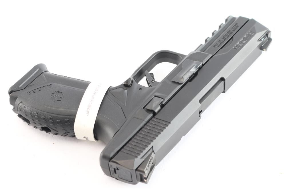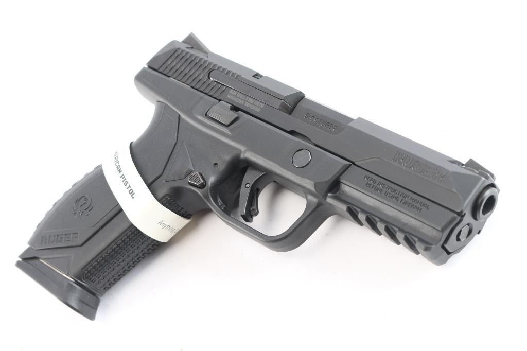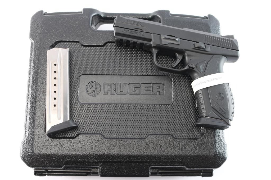 ‘Pro Duty’ Striker fired semi-automatic duty-size pistol chambered in 9x19mm and tested for sustained +P ammunition use. Manufactured in Prescott, AZ circa 2022. Features a black nitride finished stainless steel slide, 4.2” barrel with loaded chamber inspection port, dovetailed Novak LoMount Carry 3-dot sights, smooth steel trigger with integrated safety, ambidextrous push button magazine release, factory nickel-teflon plated 17 round steel magazine, ambidextrous slide stop, and black glass filled nylon frame with 1913 accessory rail, textured front strap & interchangeable wrap-around grip module. Includes the original factory hard case with manual, lock, spare magazine and two additional grip modules. Pistol retains nearly all of its black nitride finish showing minor scuffs on the barrel hood with no other wear observed. The action is sound, the bore is excellent and the synthetic frame is excellent.