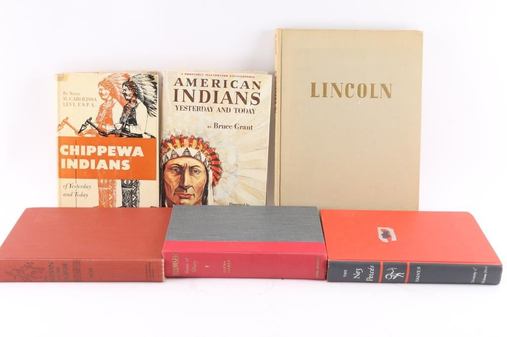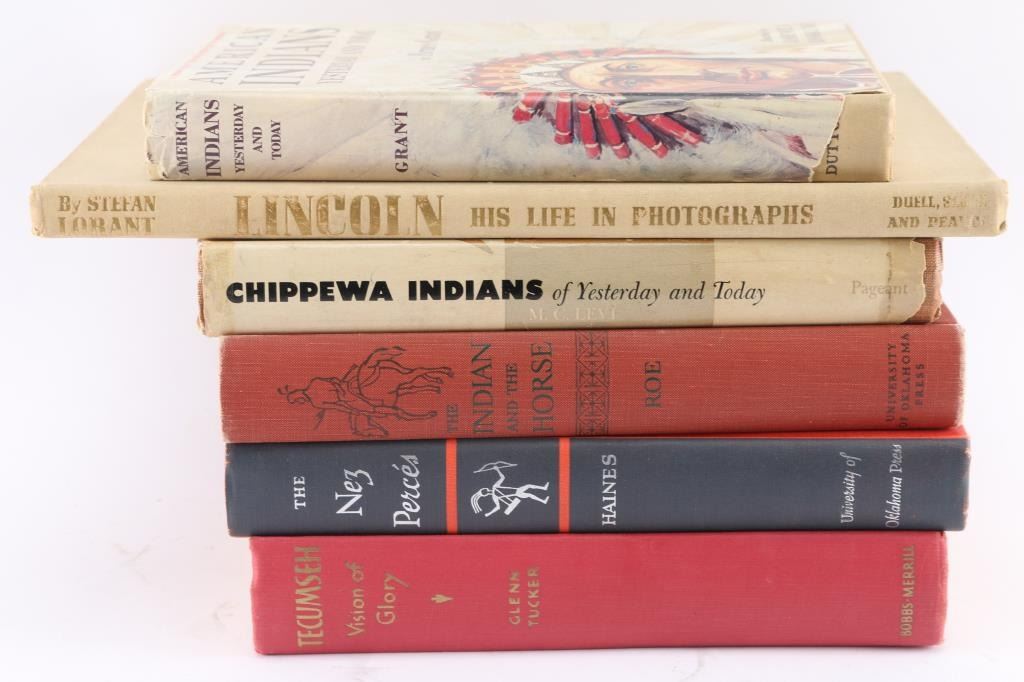 Titles include: Lincoln, His Life in Photographs, 1st Ed., copy write 1941; The Indian and the Horse, 1st Ed., copy write 1955; Tecumseh, Vision of Glory, 1st Ed., copy write 1956; The Nez Perces, Tribesmen of the Columbia Plateau, 1st Ed., copy write 1955; American Indians Yesterday and Today, 1st Ed., copy write 1958; Chippewa Indians Yesterday and Today, 1st Ed., copy write 1956.