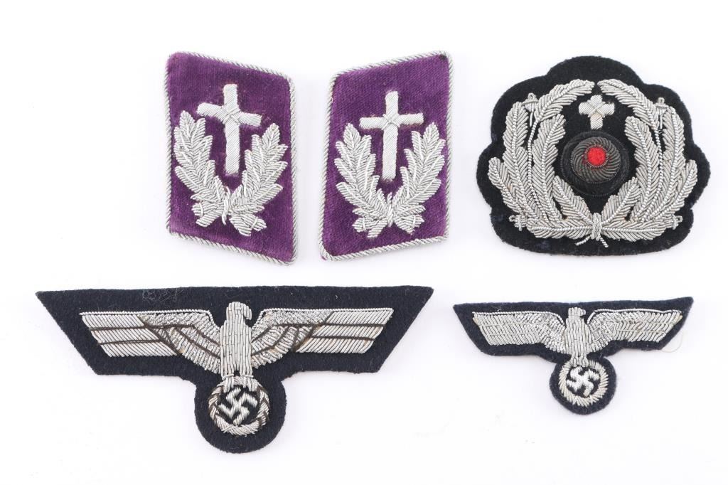 Includes: (1) Tunic breast eagle. (1) Cap breast eagle. (1) Officer's cap eagle. (1) set of Militargeistlicher collar tabs.