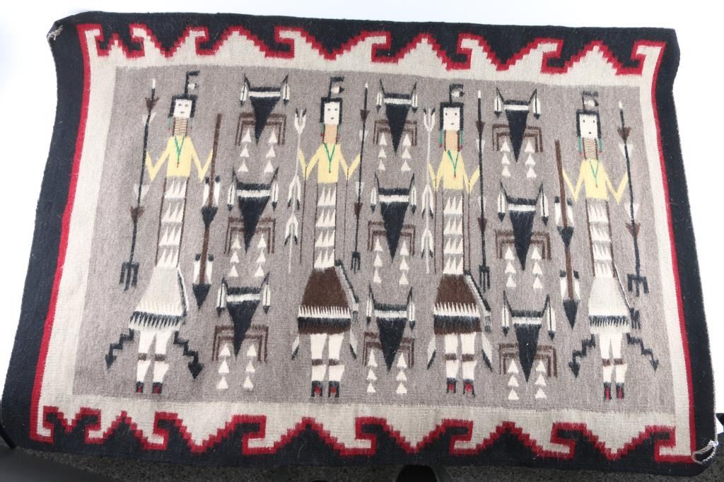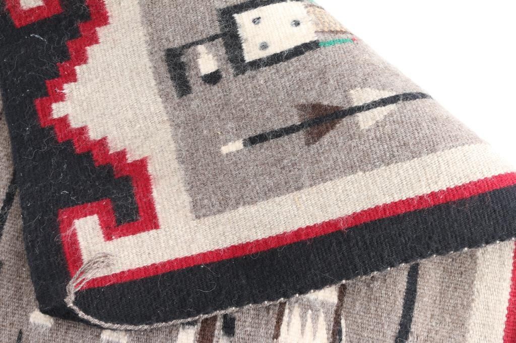 Has a grey background with red and black stair step border. 52.5 x 36". In excellent condition.