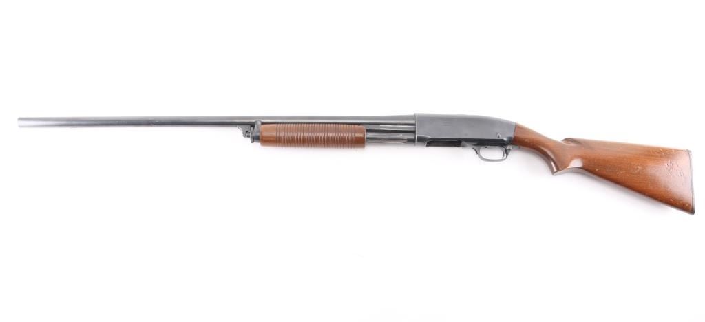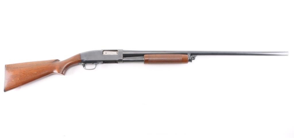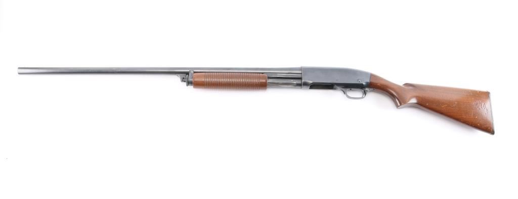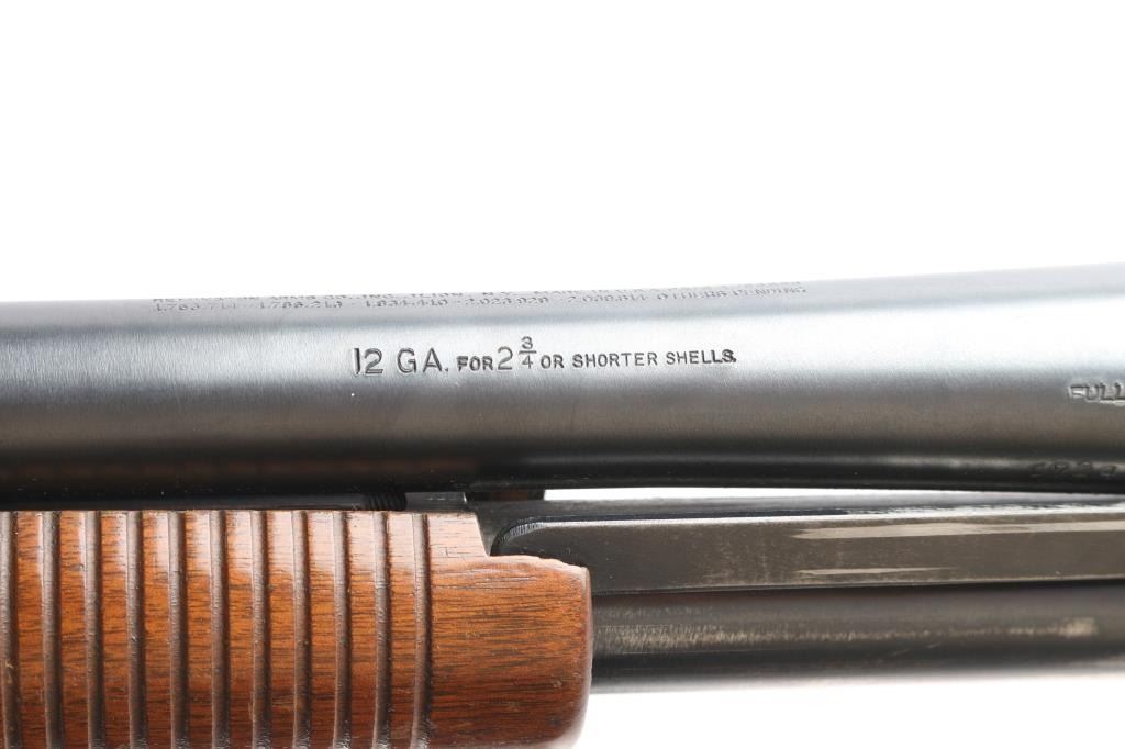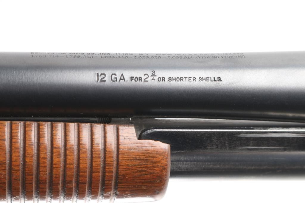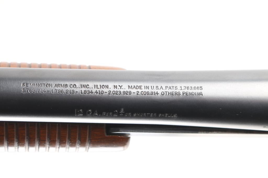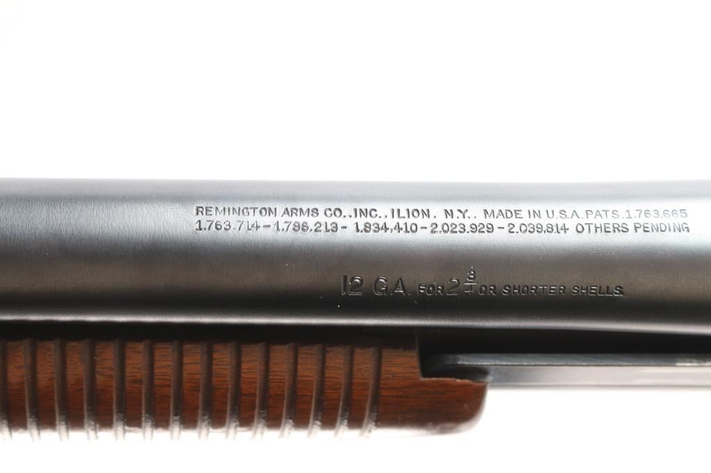 Vintage Slide-action shotgun. 30" plain barrel, steel sighting bead, 2 3/4" chamber, fixed Full choke. Manufactured 1931-47. The slide action lives up to its billing as having a "ball bearing" feel. The model 31 was Remington's first ever side eject pump. Many consider the Model 31 the finest pump shotgun ever made. Push button safety. Blue finish, grooved walnut forearm and smooth pistol grip stock with factory buttplate. Bore is excellent/bright, action is crisp/tight, wood is good/sound with scratches/dents. Blue is very good with friction wear on the tube, some handling wear wear with a few minor scratches/rubs. LOP is 14".