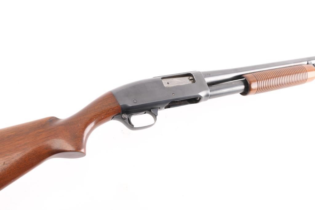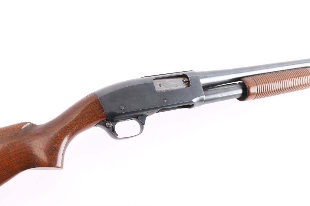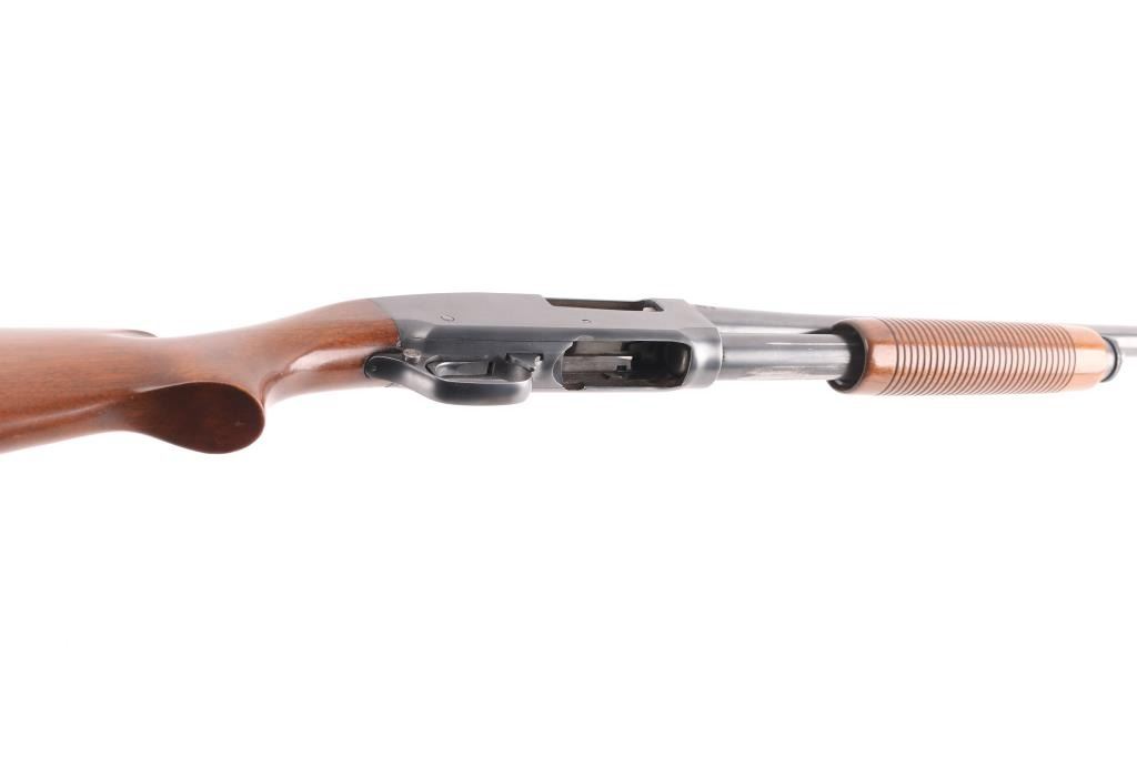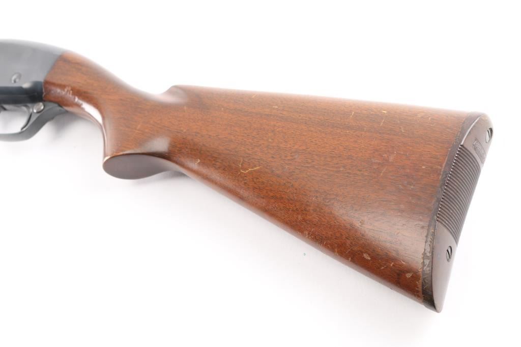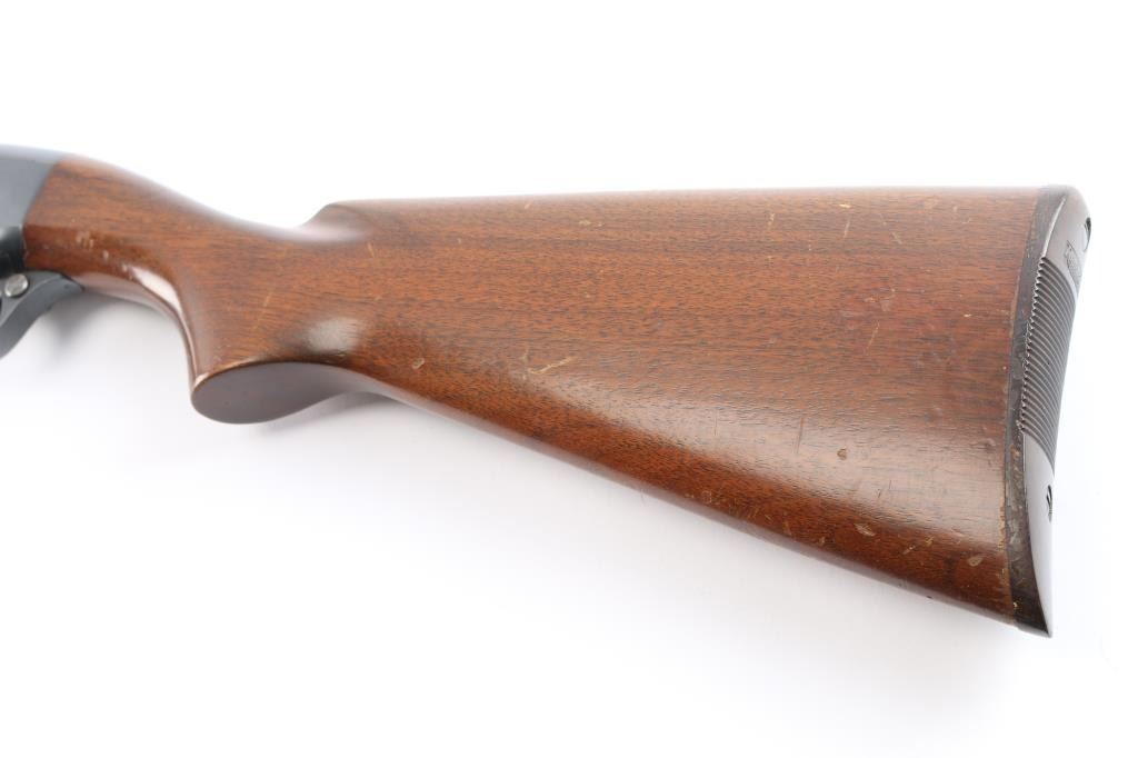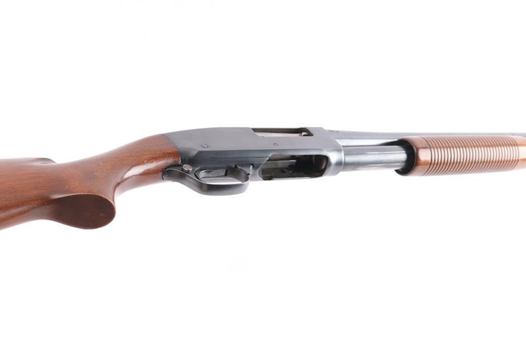 Vintage Slide-action shotgun. 30" plain barrel, steel sighting bead, 2 3/4" chamber, fixed Full choke. Manufactured 1931-47. The slide action lives up to its billing as having a "ball bearing" feel. The model 31 was Remington's first ever side eject pump. Many consider the Model 31 the finest pump shotgun ever made. Push button safety. Blue finish, grooved walnut forearm and smooth pistol grip stock with factory buttplate. Bore is excellent/bright, action is crisp/tight, wood is good/sound with scratches/dents. Blue is very good with friction wear on the tube, some handling wear wear with a few minor scratches/rubs. LOP is 14".