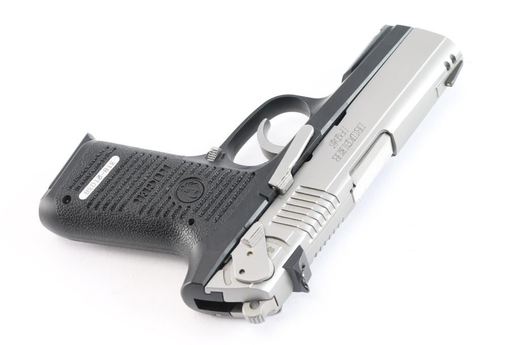 Double-action semi-automatic pistol chambered in 9x19mm. Manufactured in Prescott, AZ circa 2012. Features a satin finished stainless steel slide, 3.9" stainless steel barrel, three-dot sights with pinned front & drift adjustable rear, smooth curved trigger, serrated hammer spur, ambidextrous slide mounted safety/decocker, ambidextrous magazine release, 10 round OEM magazine, and black fiberglass-reinforced polymer frame with integral accessory rail and grooved/textured grip. Includes two spare OEM magazines. Pistol exhibits minor contact wear on the barrel hood with no other wear observed. The action is mechanically sound, the bore is excellent, and the polymer is excellent.