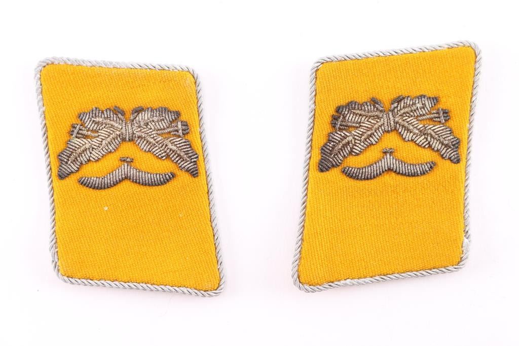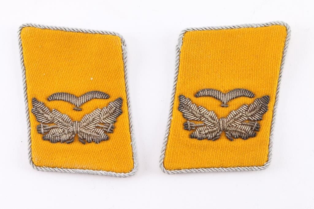 (1) German Cuff Tabs & Shoulder Ornaments.(1) Luftwaffe Collar Tabs. Yellow for flight crew with silver colored embroidery.