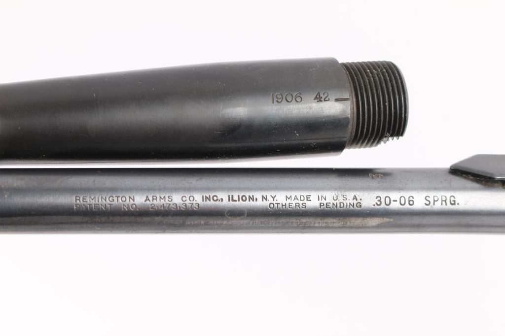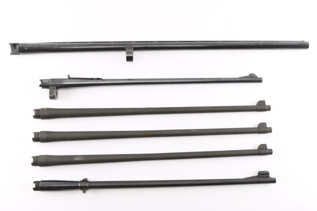 Includes: Winchester model 70 (30-06), 24" barrel, little to no scratches. Remington (12GA), 30", for 2-3/4", ribbed with white bead front site and steel mid length bead, little to no scratches, excellent condition. Remington (30-06), 23", 75% finish, scattered rust spots, and strong rifling, ZZ date code (1953), possible model 7400 series. (3) Remington 1903A3 (30-06), 24", excellent condition.