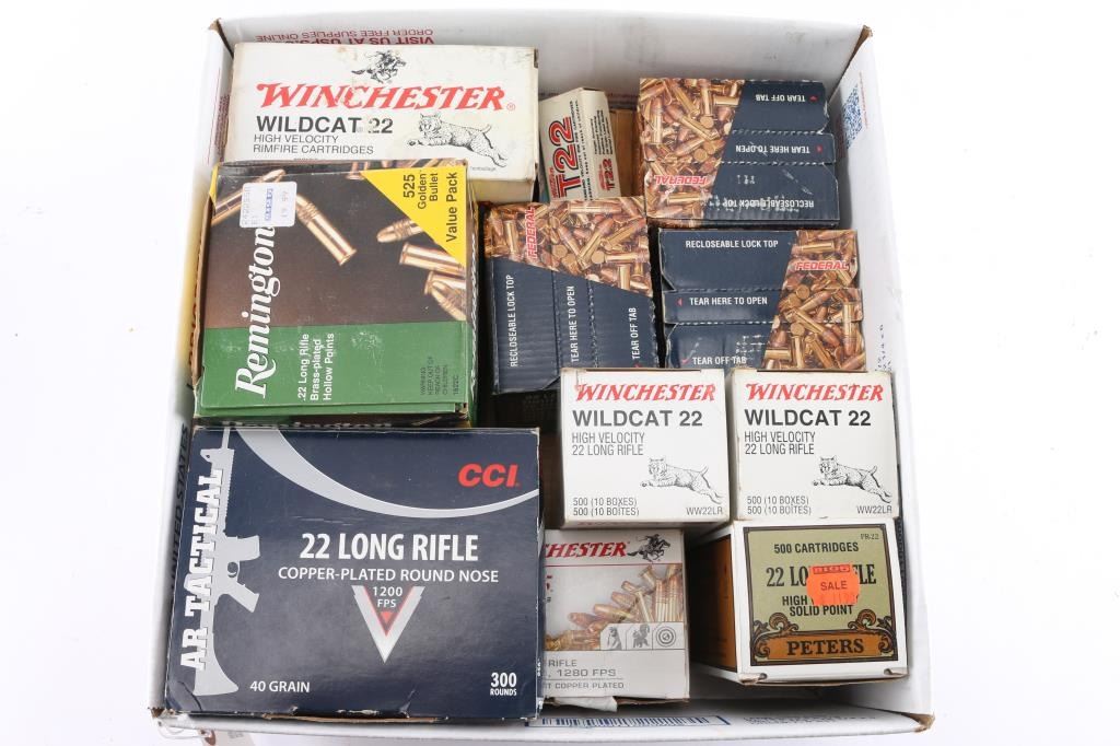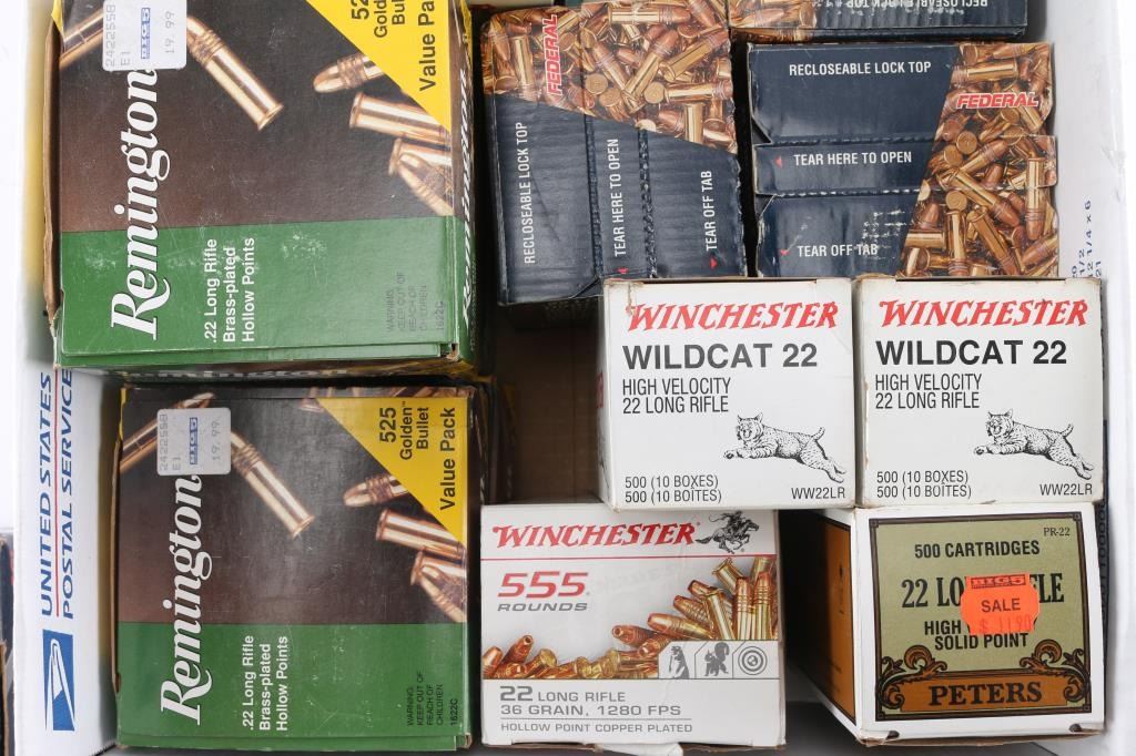 Includes: (4) boxes of Winchester, (2) boxes of Federal, (1) box of Peters, (6) boxes of Remington. Weighs approximately 56.00 lbs. ***Counts are approximate***