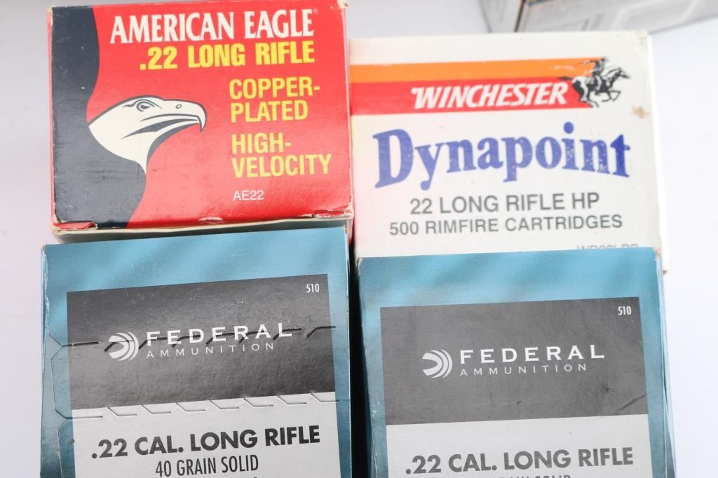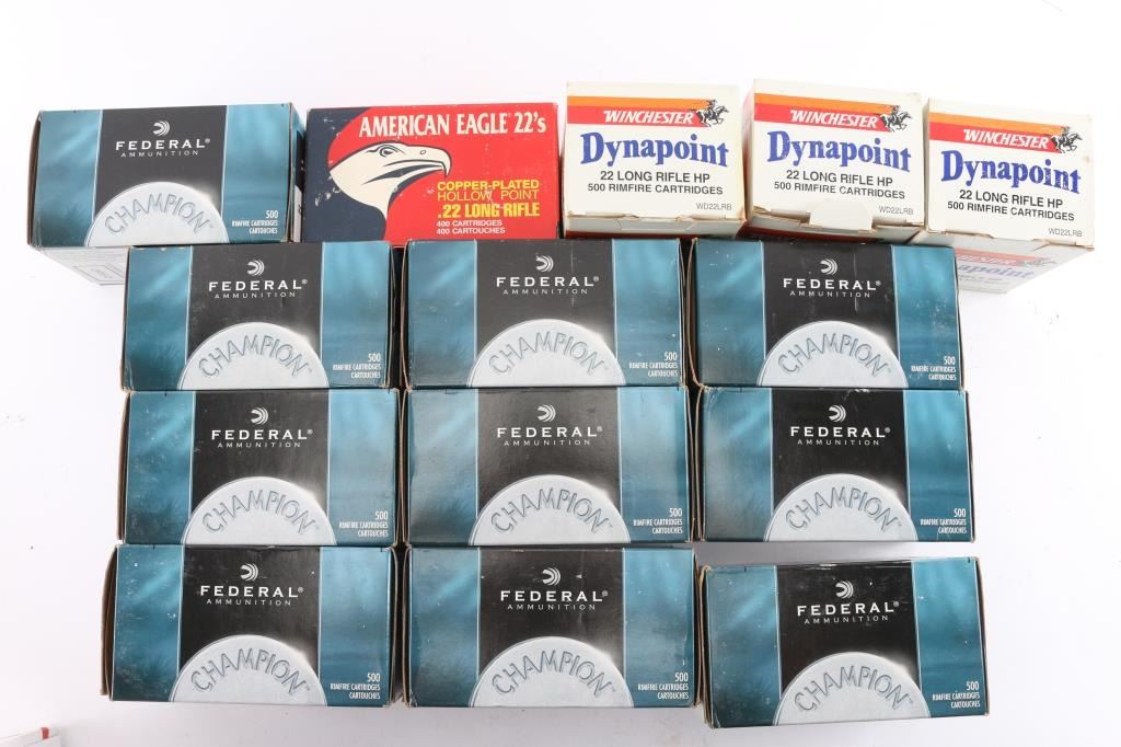 Includes: (10) boxes of Federal, (3) boxes of Dynapoint, (1) box of American Eagle. Weighs approximately 54.50 lbs. ***Counts are approximate***