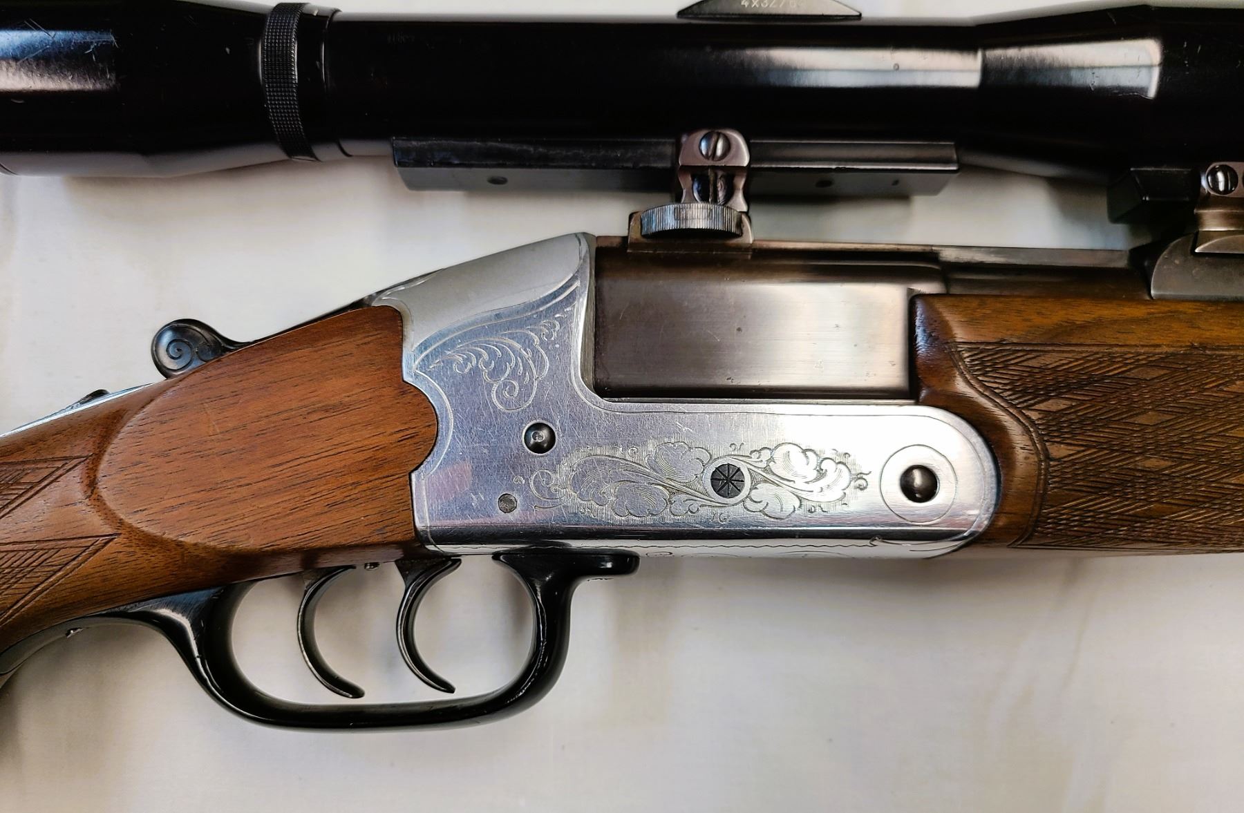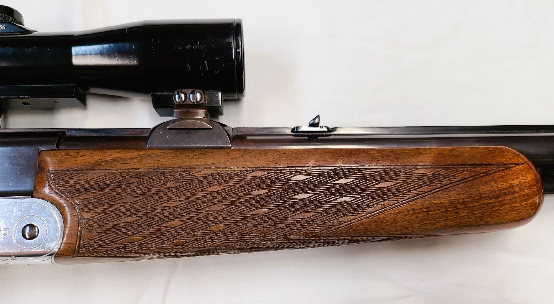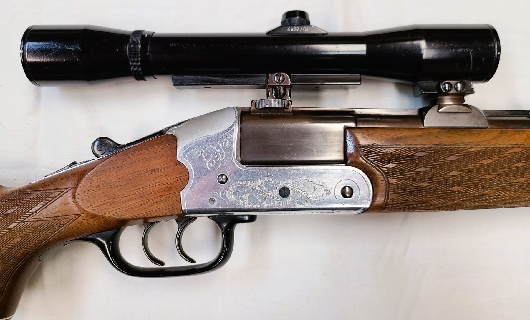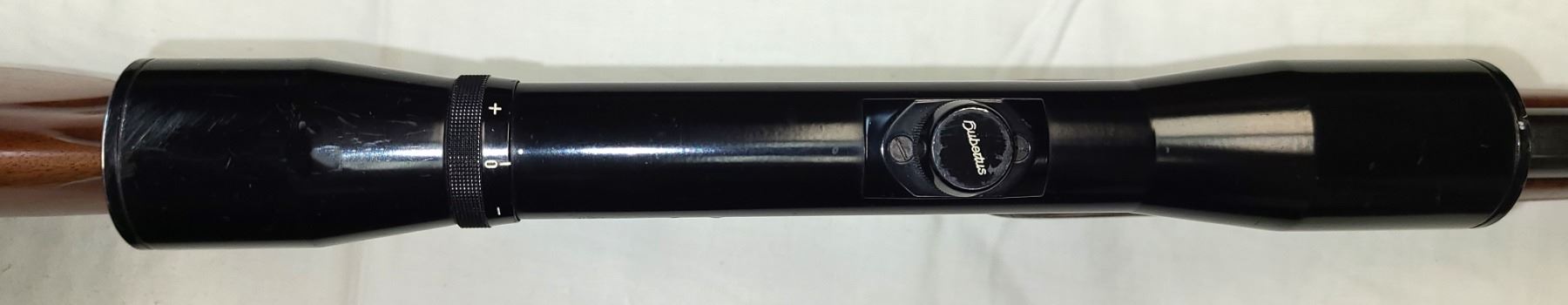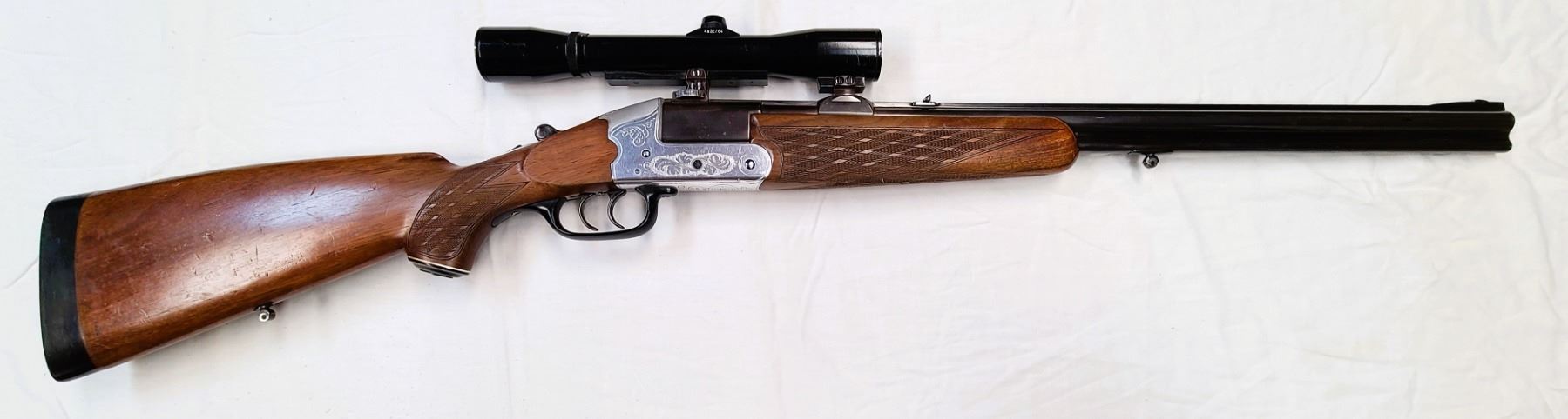 Comes mounted with special QD claw mounts a Hubertus Scope 4 x 32 power with a