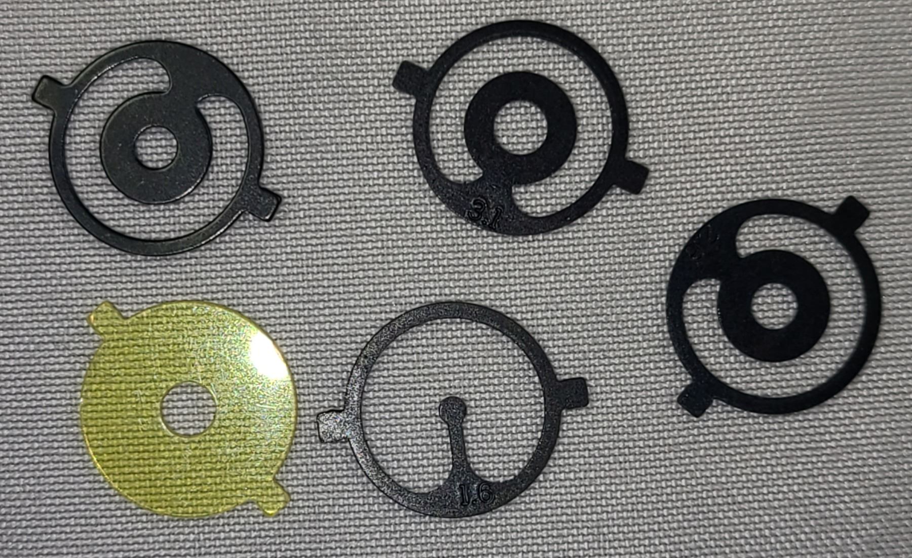 Comes with a set of 5 front sight reticle insert discs, a 6th one is in the sight on the