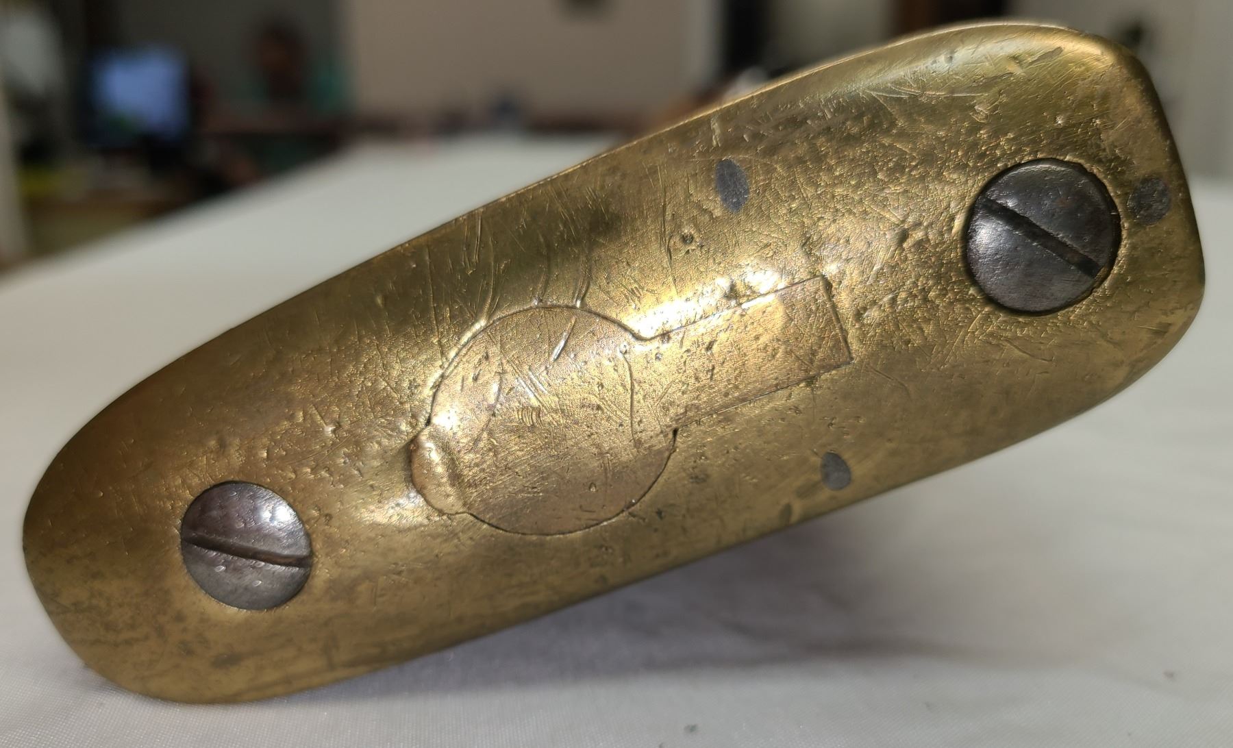 colored wood and a heavy varnish finish.