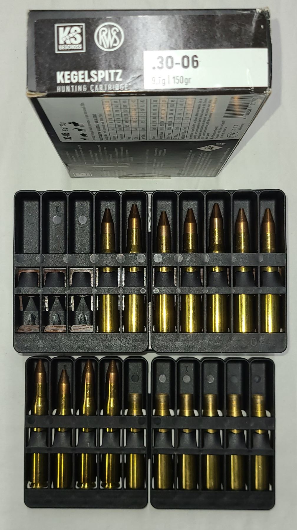30-06 RWS Kegelspitz 150 gr Jacketed Soft Point - 31 rds + 6 Brass