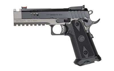 The Girsan Witness2311 Match X is a full-size, double-stack 1911 chambered in 9mm. It features an integrated barrel compensator that significantly mitigates felt recoil. The fully adjustable rear sight, combined with a fiber optic front sight, allows for fast sight alignment and quick target acquisition. Additional standard features include a full-length accessory rail, removable magazine well, extended beavertail, ambidextrous thumb safety, excellent grip texturing, two-tone Cerakote finish, and optic-ready slide.