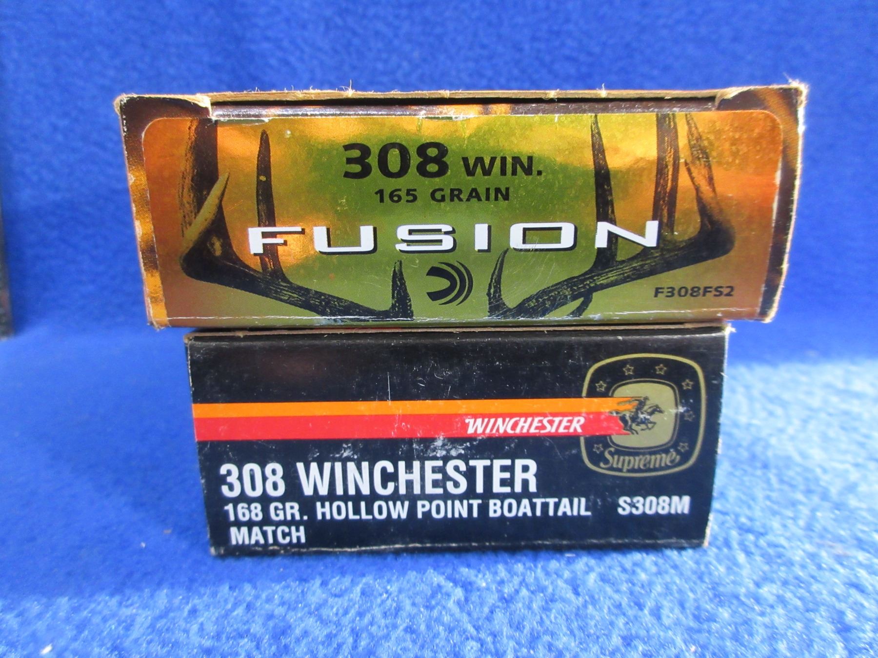 308 Win. Federal & Winchester Cartridges (Pick Up or Ship by UPS Only) - Box of 20 (Win. 168gr HP BT Match), Box of 20 (Federal 165gr Fusion)