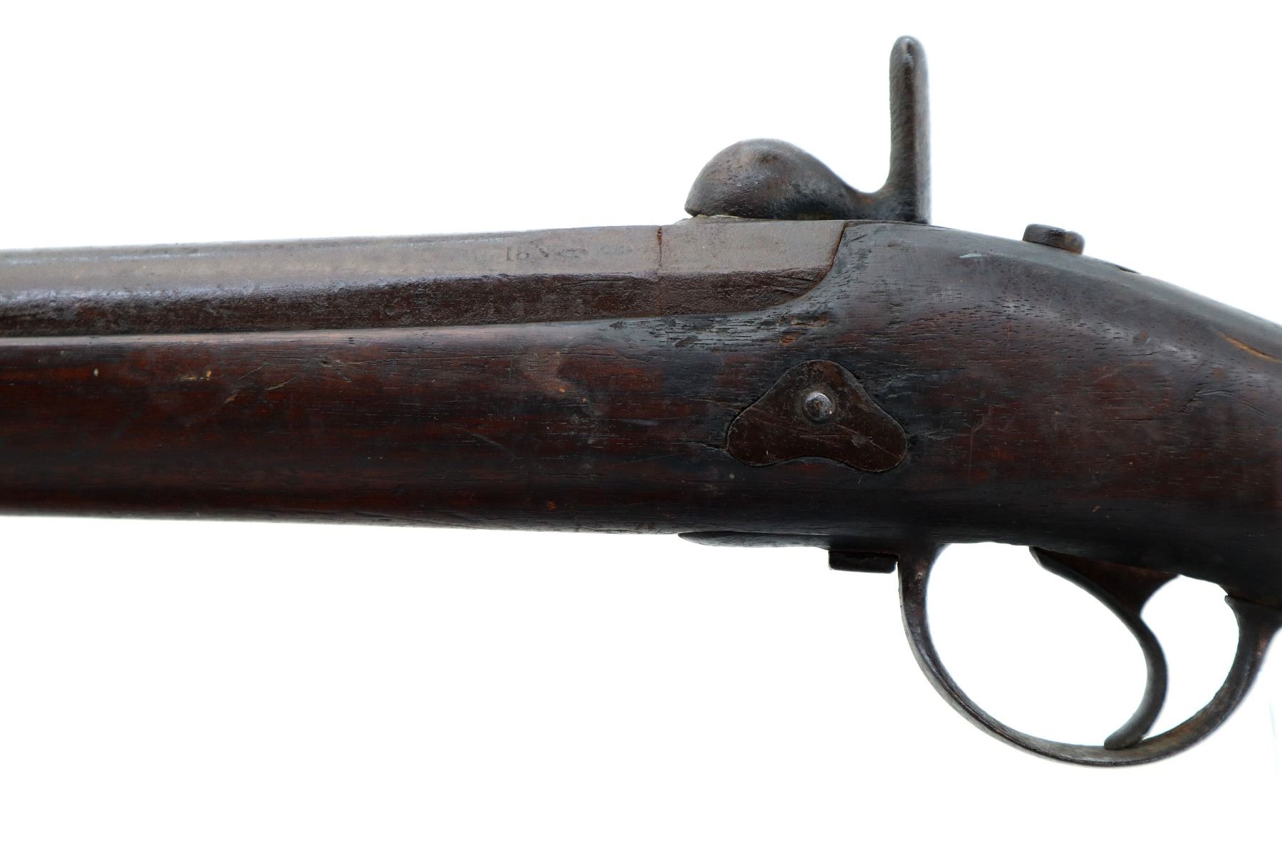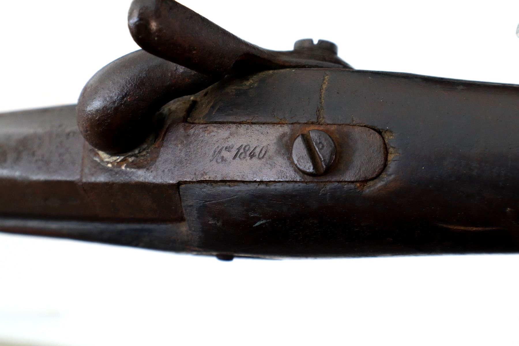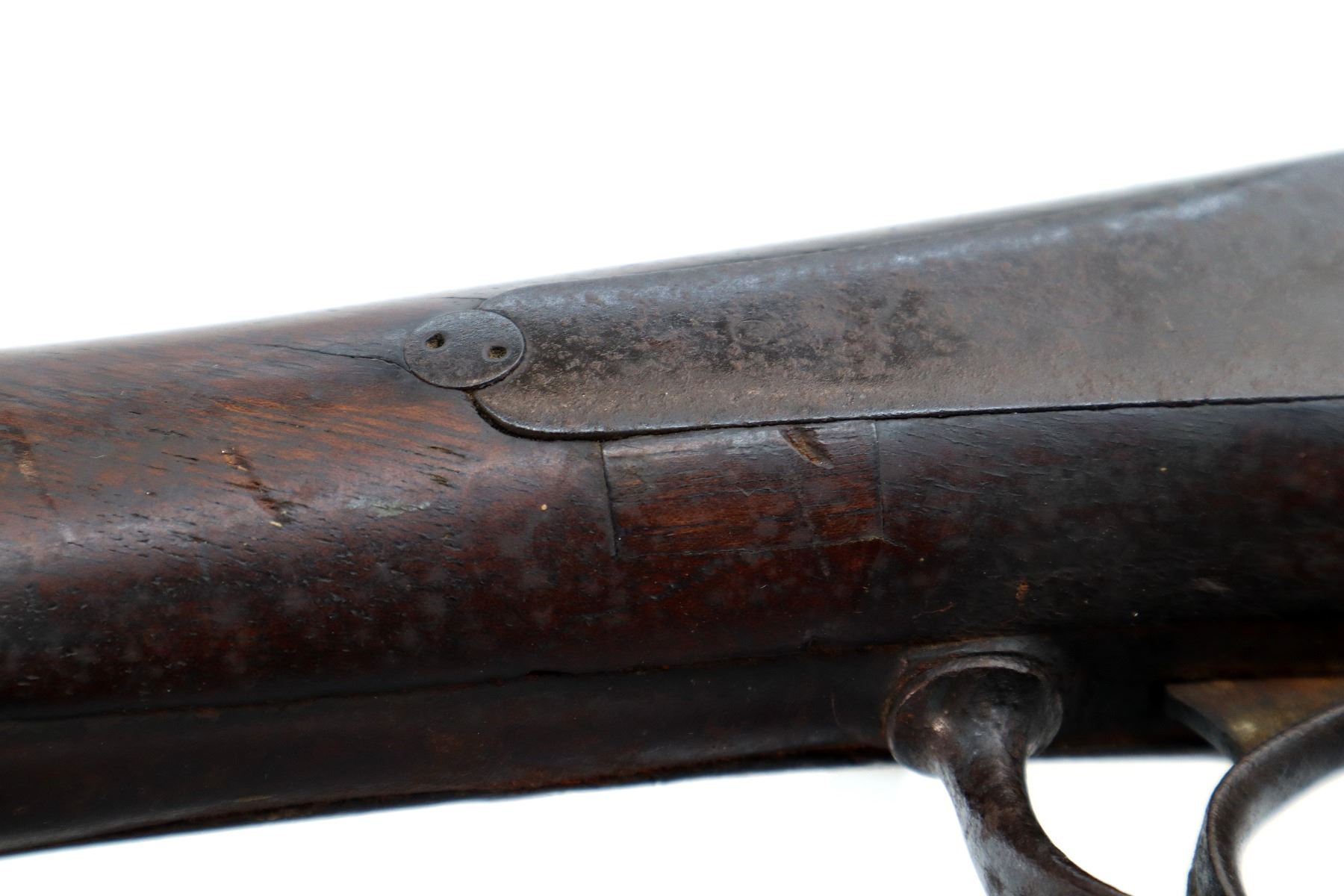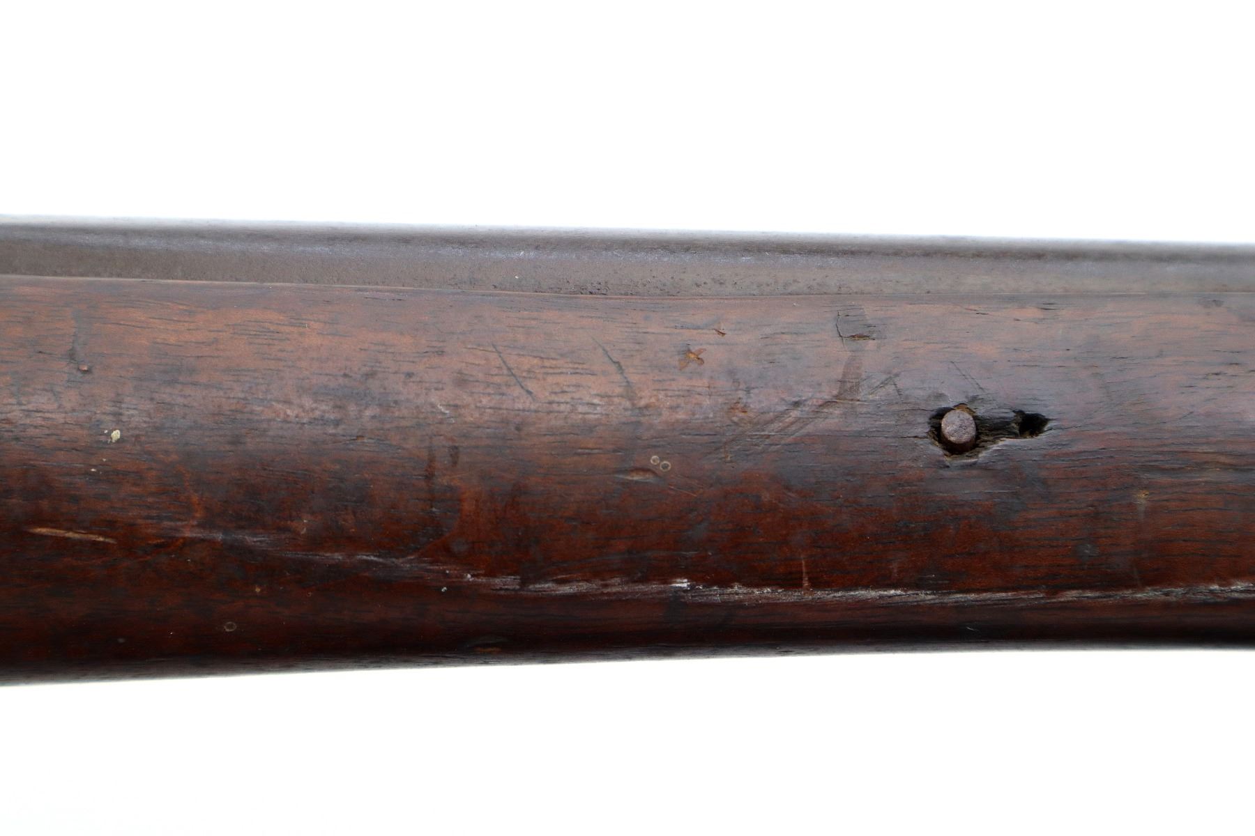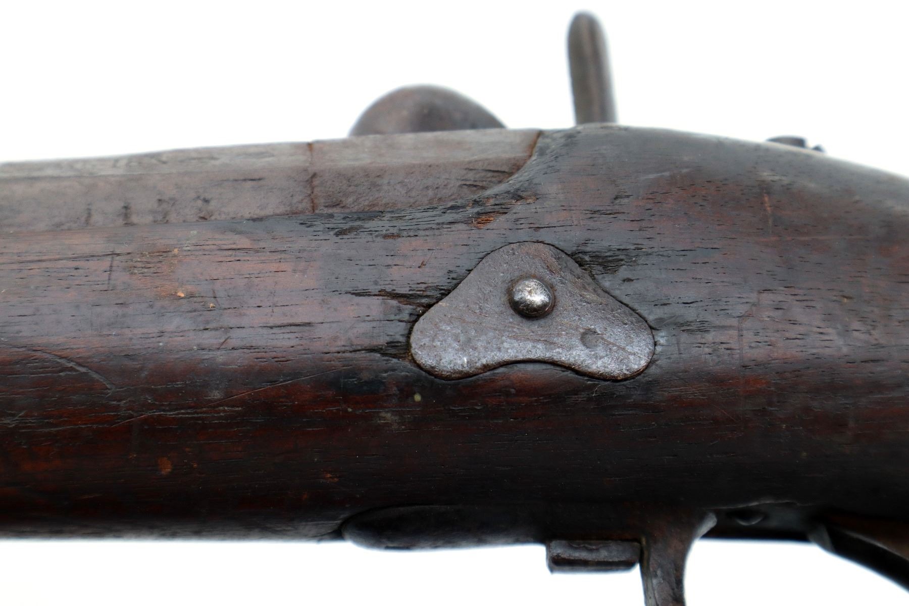 Main Description: Steel bead, tapered round barrel, smooth back action lock with checkered spur hammer that functions, nipple is damaged. One piece half length wood stock, forearm is chipped and cracked, straight grip, chipped and cracked behind barrel and lock, smooth steel butt plate, missing ramrod.
