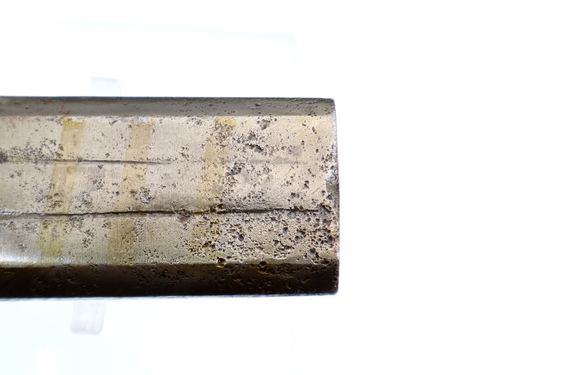 Wear: Metal finish turning silver grey with pitting, scratches, handling marks and wear. Grips show marks, scratches and wear.