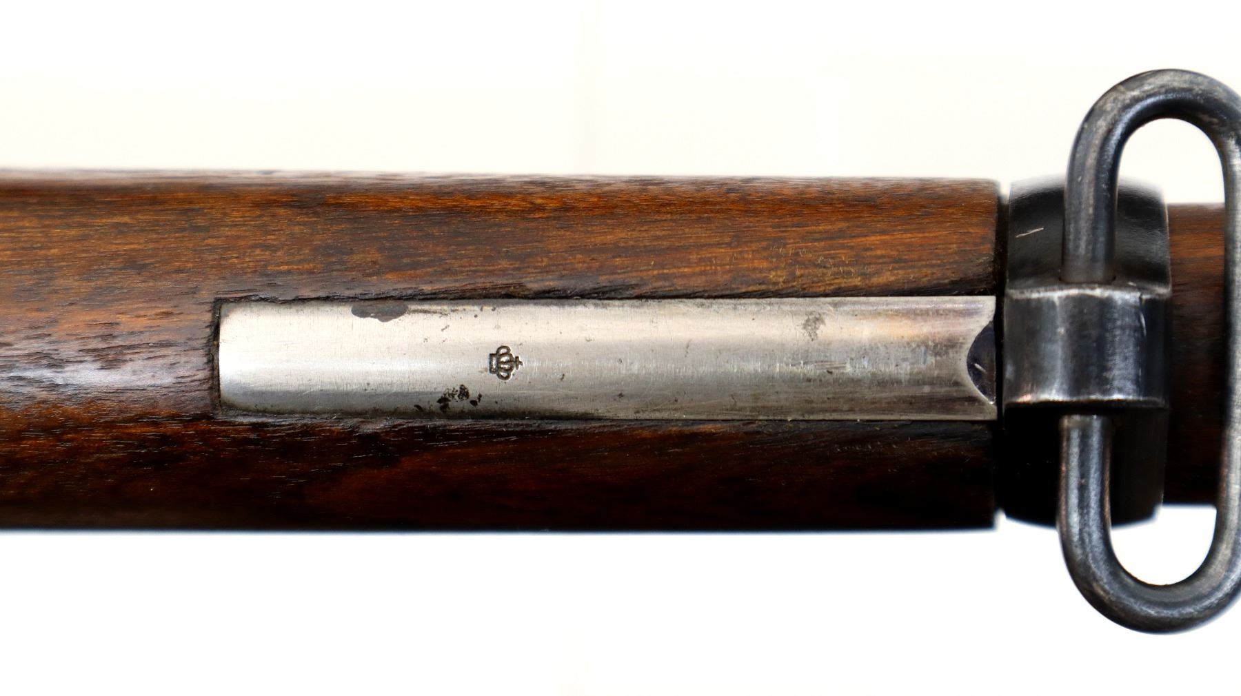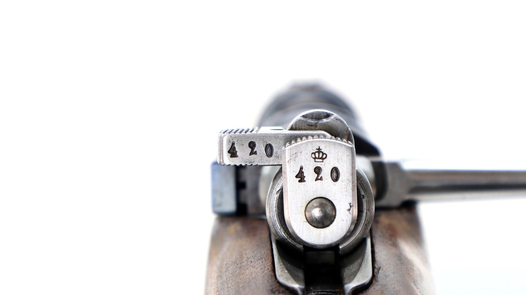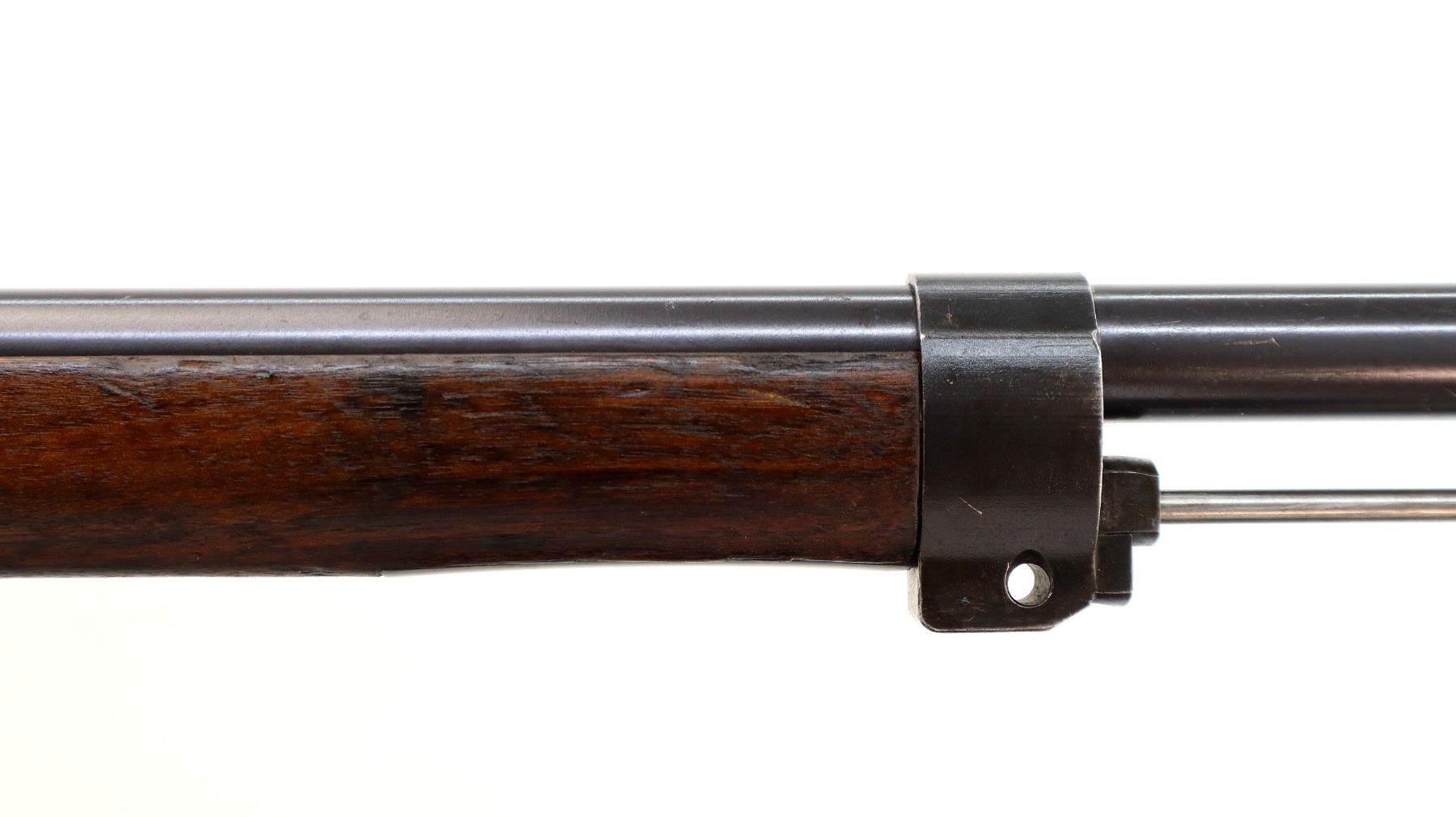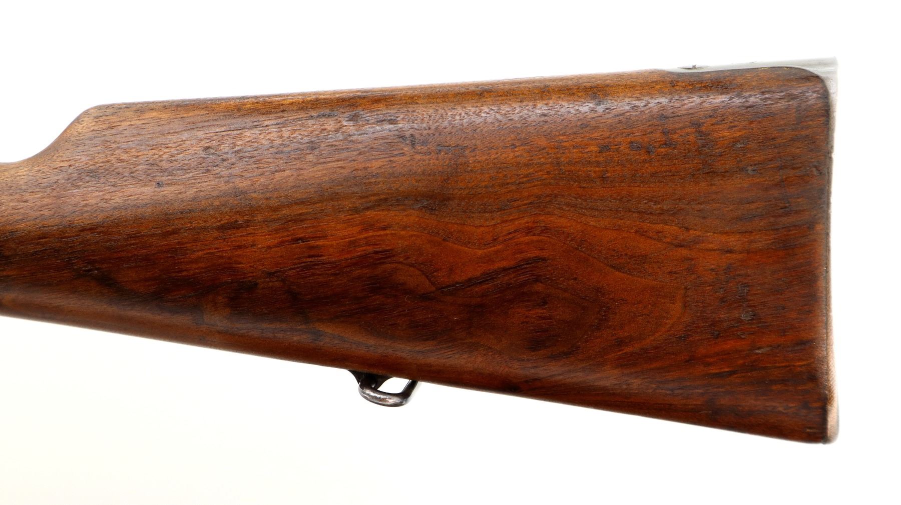 Main Description: Manufactured by Carl Gustafs 1917, visible numbers match. Blade front sight with ramp, adjustable u notched rear sight, blued finish, silver bolt with straight handle. Two piece full military wood stocks, finger grooved forearm, straight grip small crack behind tang, smooth steel butt plate, brass stock disk on right side, sling swivels, bayonet lug, cleaning rod.