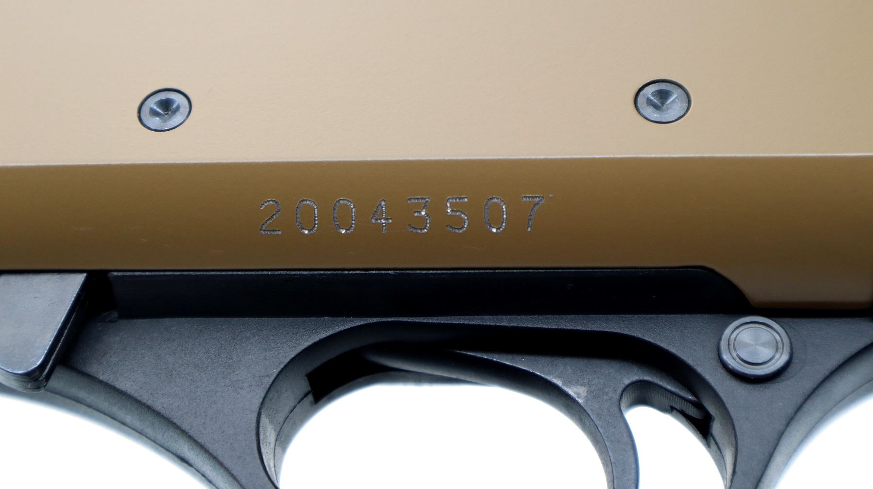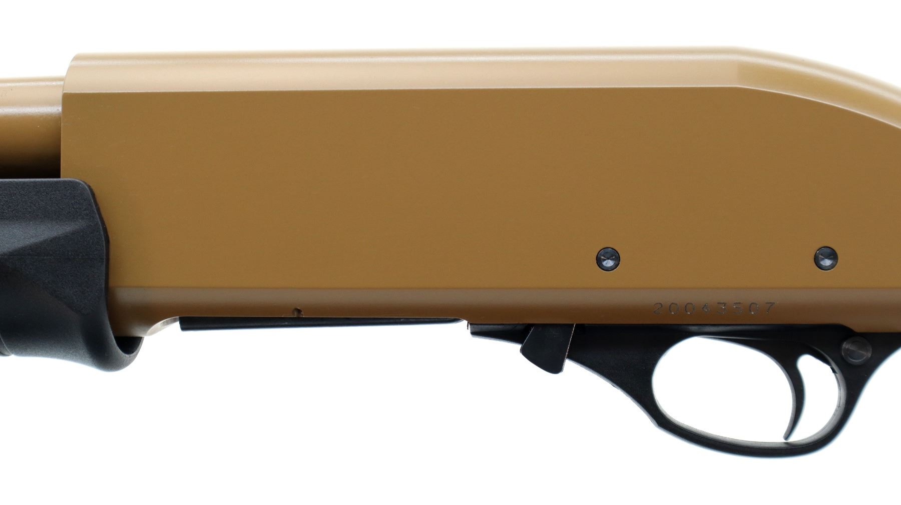 Main Description: Blade front sight, Flat Dark Earth Metal finish, round barrel, alloy receiver. Two piece black synthetic stocks, grooved extended forearm and pistol grip.