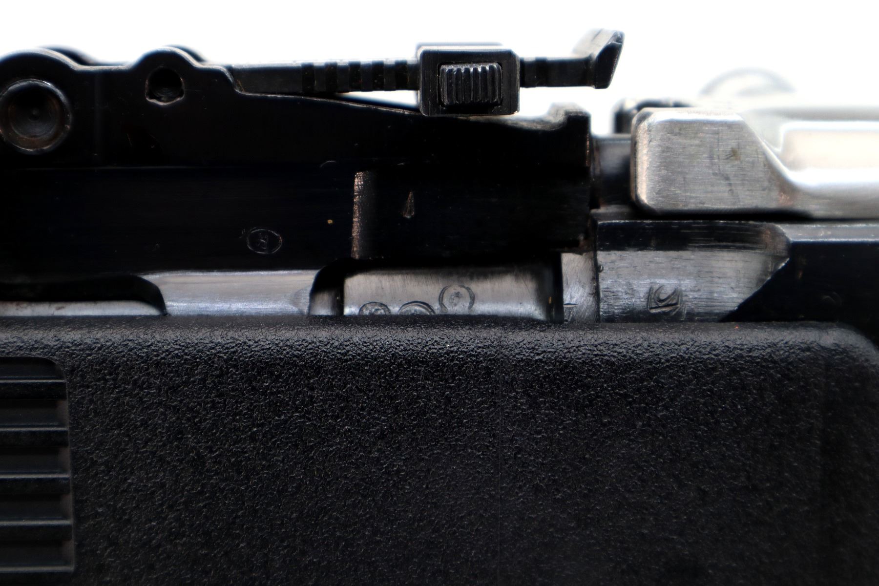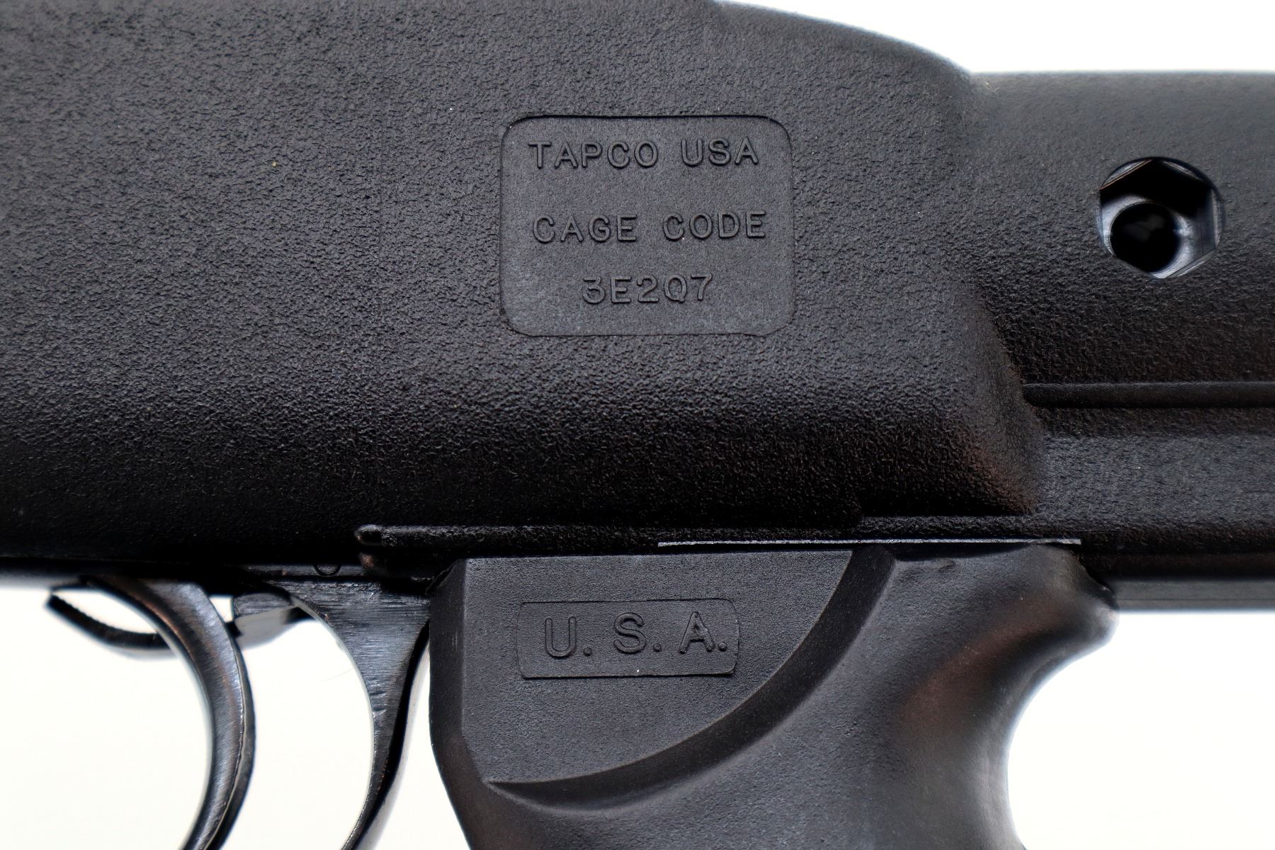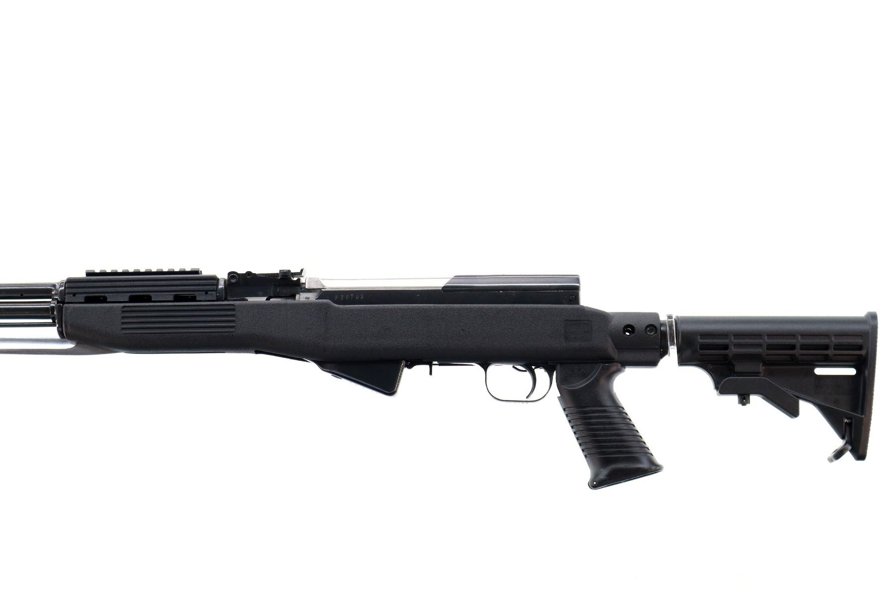 Main Description: Manufactured by Tula 1951, visible numbers match. Post front sight with hood and ramp, adjustable u notched rear sight, blued finish, silver bolt and carrier. Two piece black synthetic Tapco synthetic stocks, ventilated handguard with integral rail on top, grooved forearm and pistol grip with trap, collapsible M4 style butt stock, missing one retaining bolt, checkered butt, sling swivels, cleaning rod, attached folding blade bayonet.